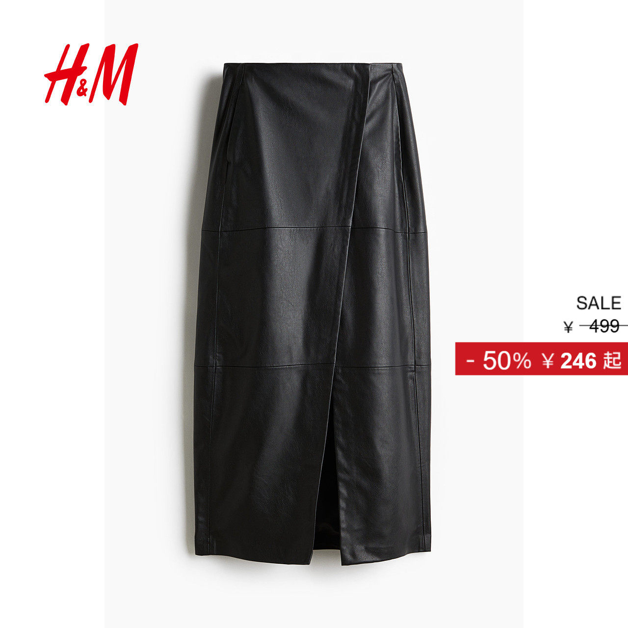 HM冬季女装涂层面料围裹式半身裙1256756