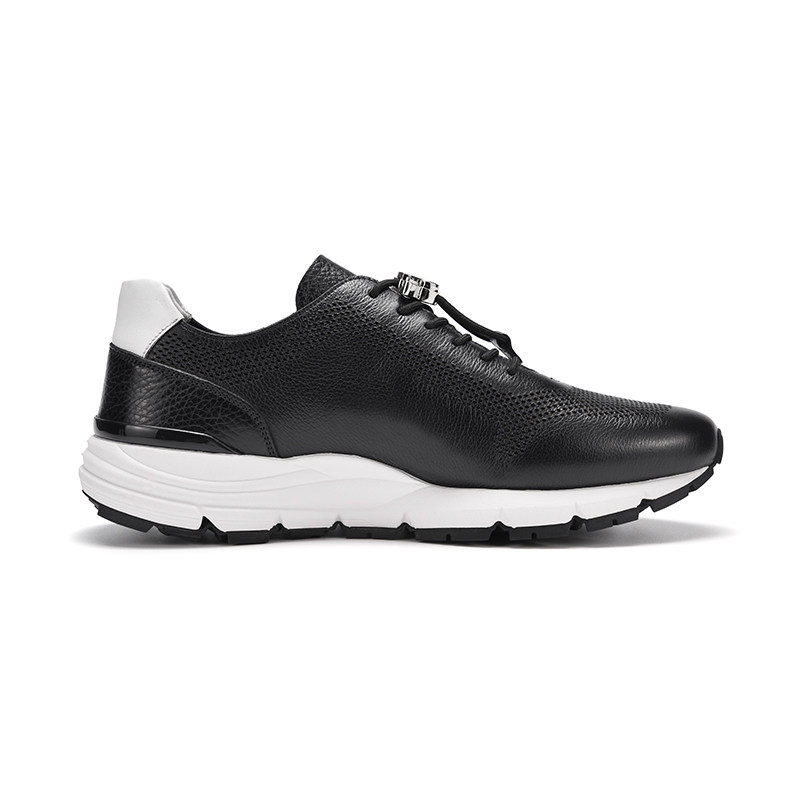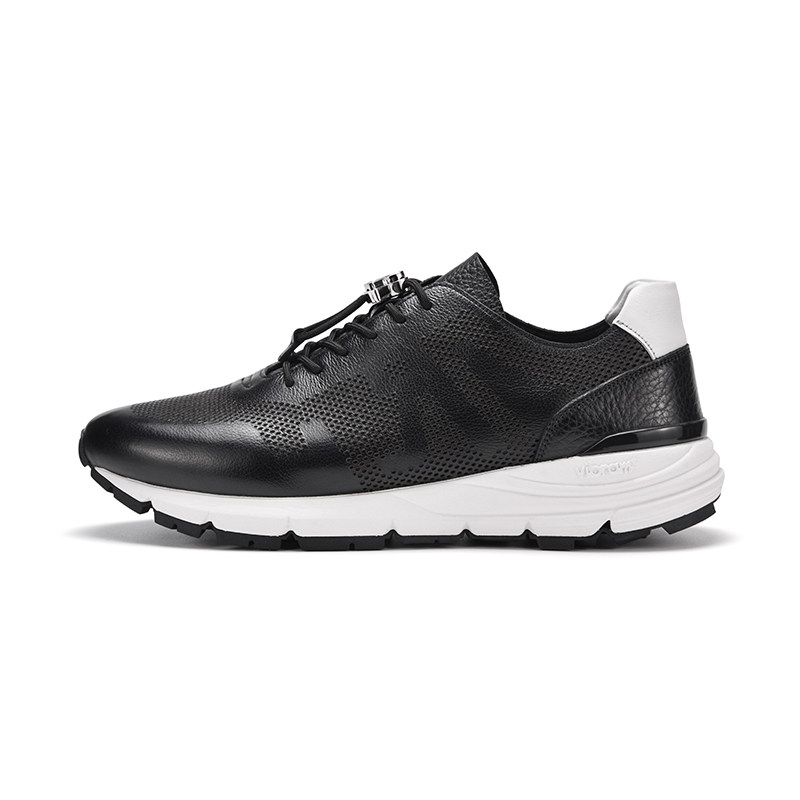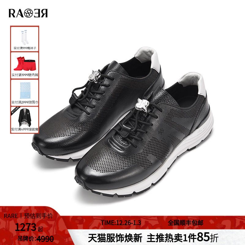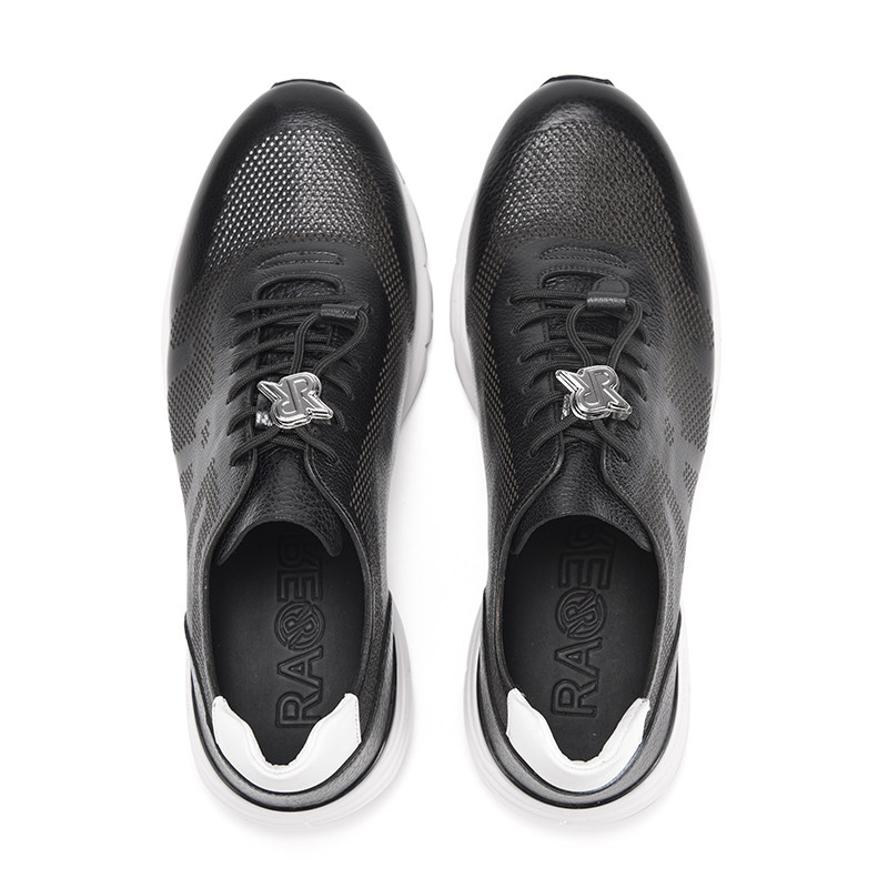 RARE威雅男鞋 春夏新款透气男士鞋子黑色单层摔纹皮革休闲运动鞋