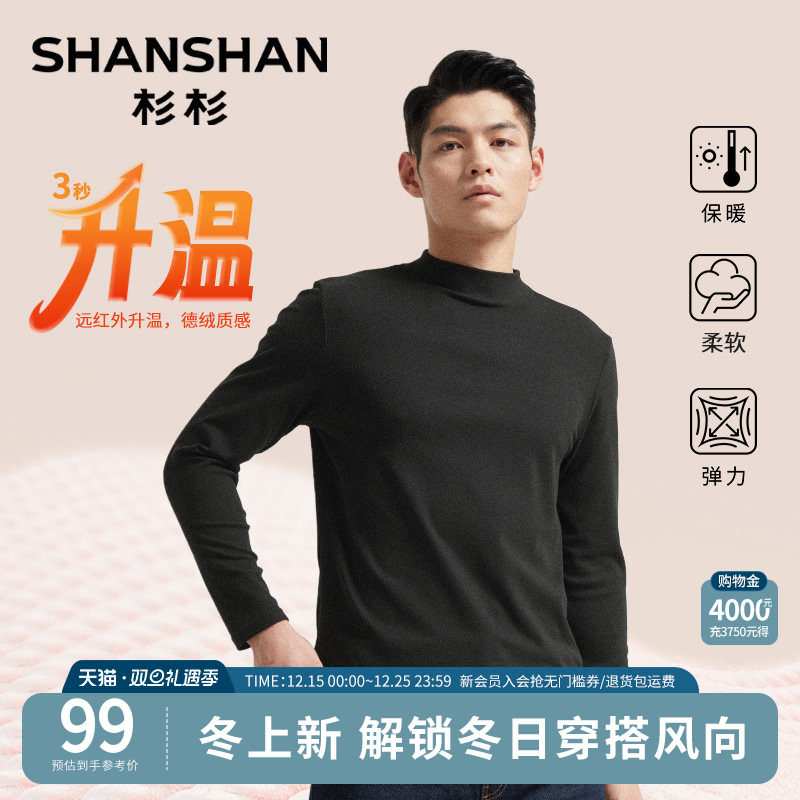 [远红外发热磨毛]杉杉半高领男士长袖t恤2025秋冬新品内搭打底衫