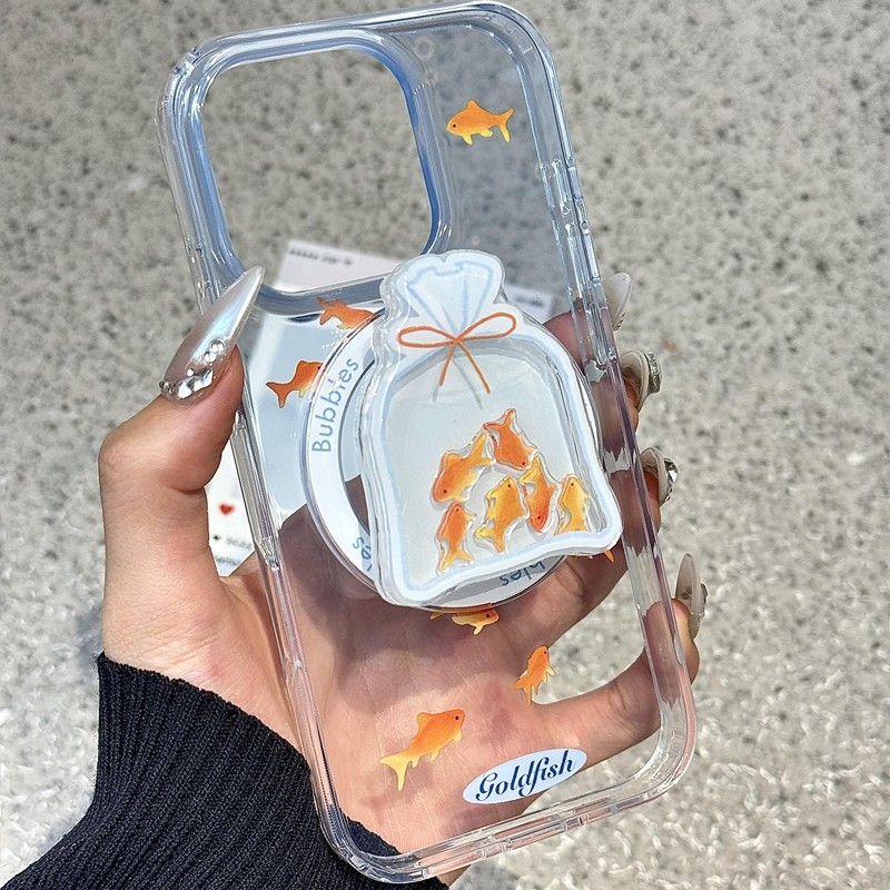 湖蓝色渐变金鱼摇摇乐支架iPhone17手机壳苹果17promax新款16promax磁吸简约15个性全包14高级感13透明保护壳