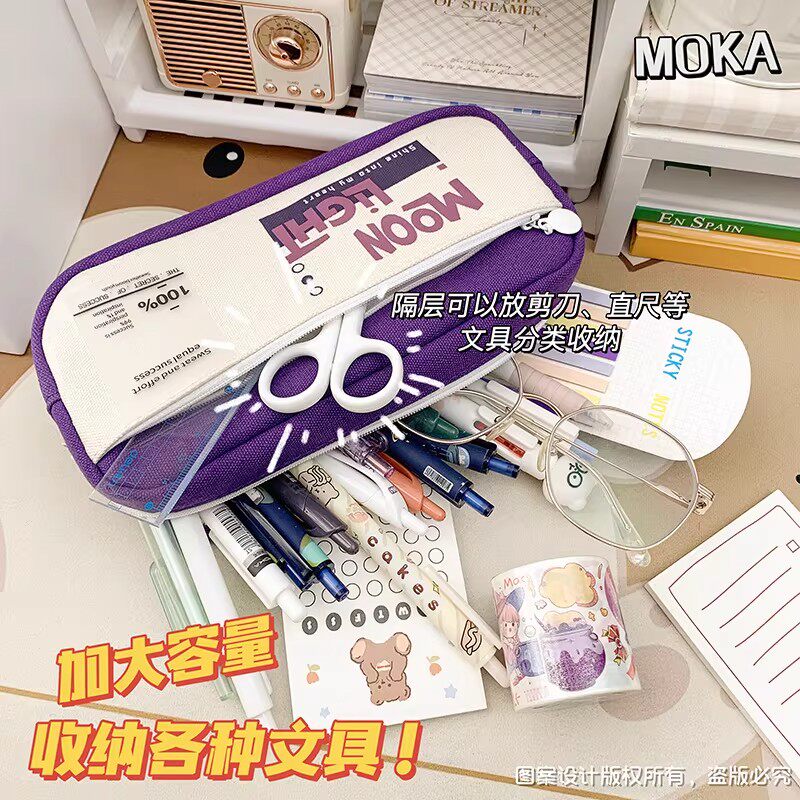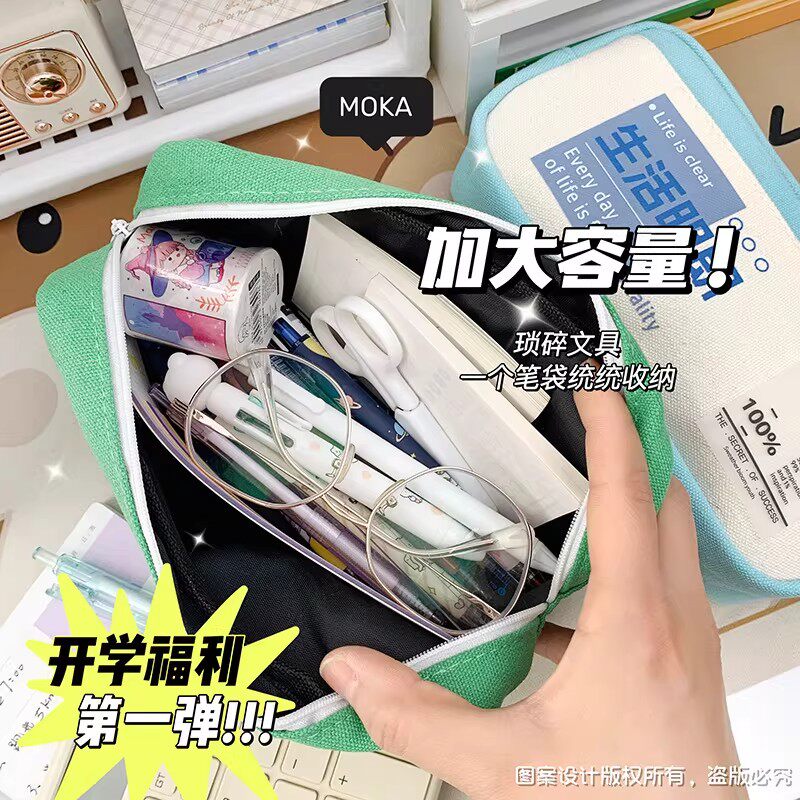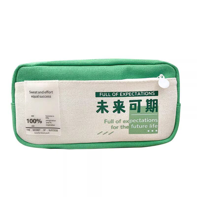 高颜值帆布简约笔袋励志文字ins日系男女孩初中学生文具盒大容量