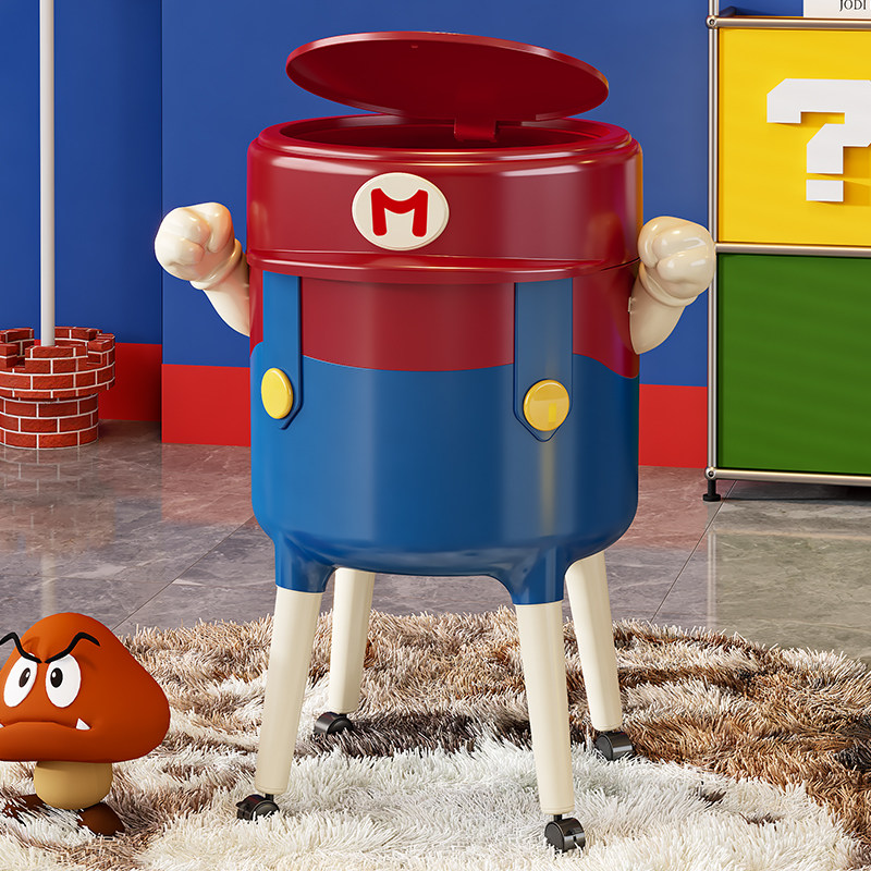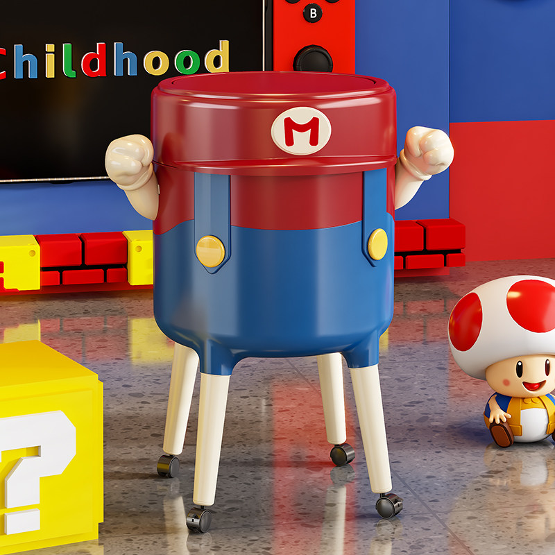 卡通垃圾桶超级马里奥2025新款厨房卧室客厅家用可爱免弯腰可移动