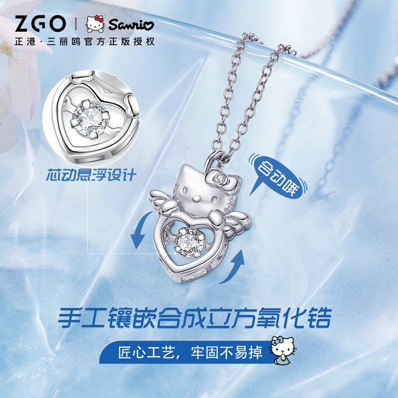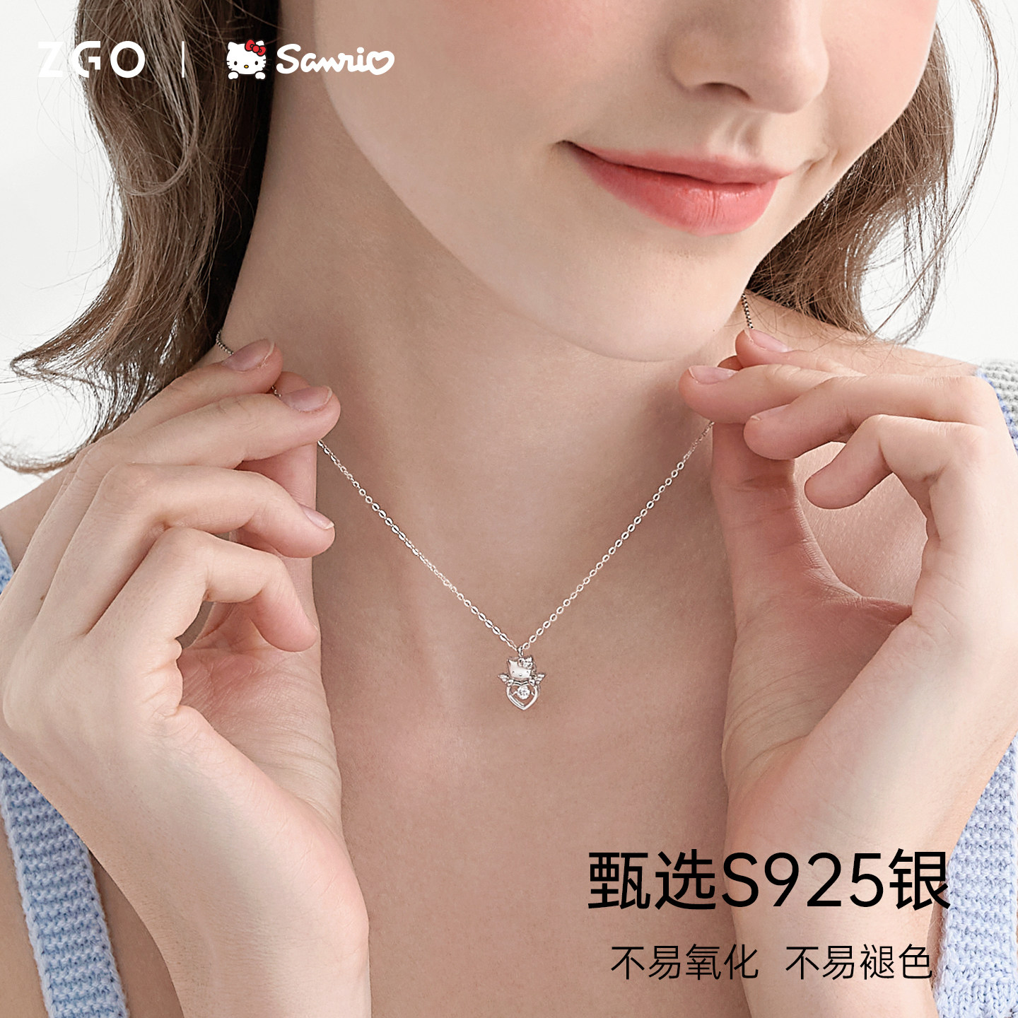 正港ZGOx凯蒂猫hellokitty项链纯银爱心吊坠银饰闺蜜女生生日礼物