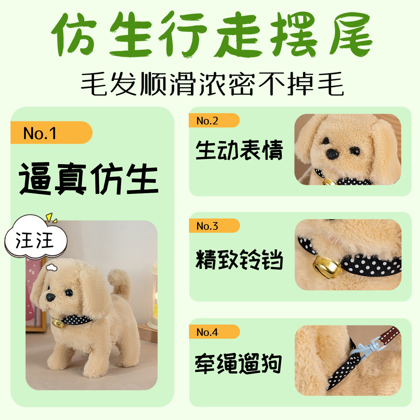 毛绒狗狗走路会叫摇尾巴小宠物狗发声说话玩偶小狗泰迪可充电模型