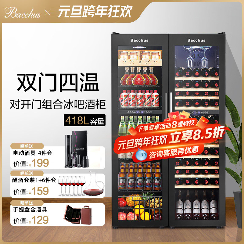 芭克斯YC-208对开门红酒柜恒温酒柜家用客厅商用茶叶冰吧组合双门