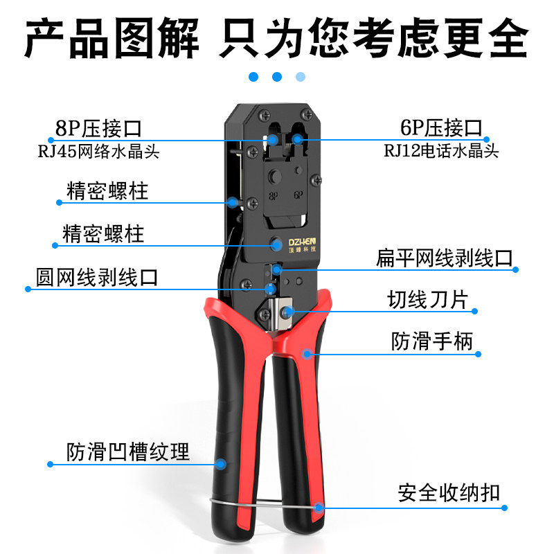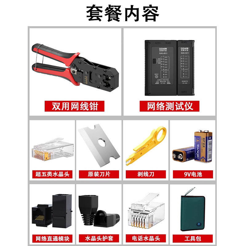 顶臻专业级多功能网线钳套装 网线压接水晶头钳子 压线钳网络模块工具超五六类接网线夹线送刀片家用工具包