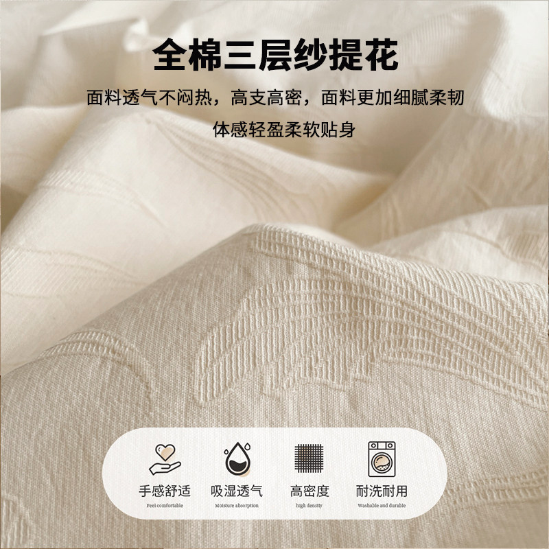猫人提花双层纱全棉床上四件套纯棉高级感被套床单床品床笠三件套
