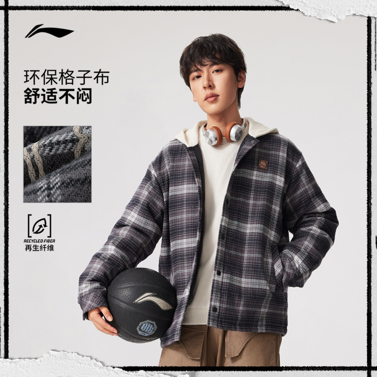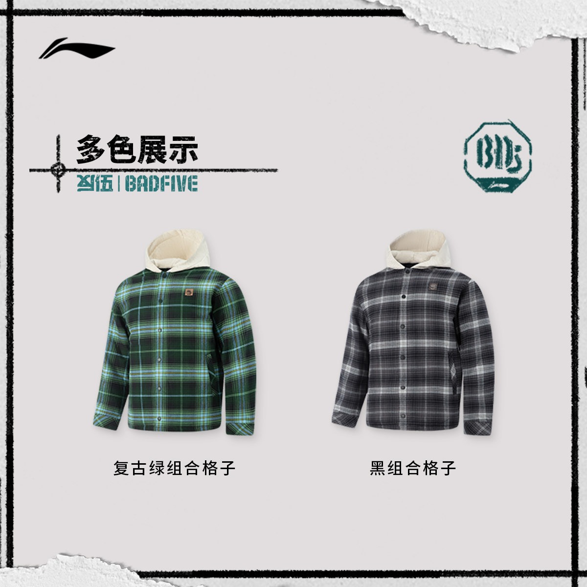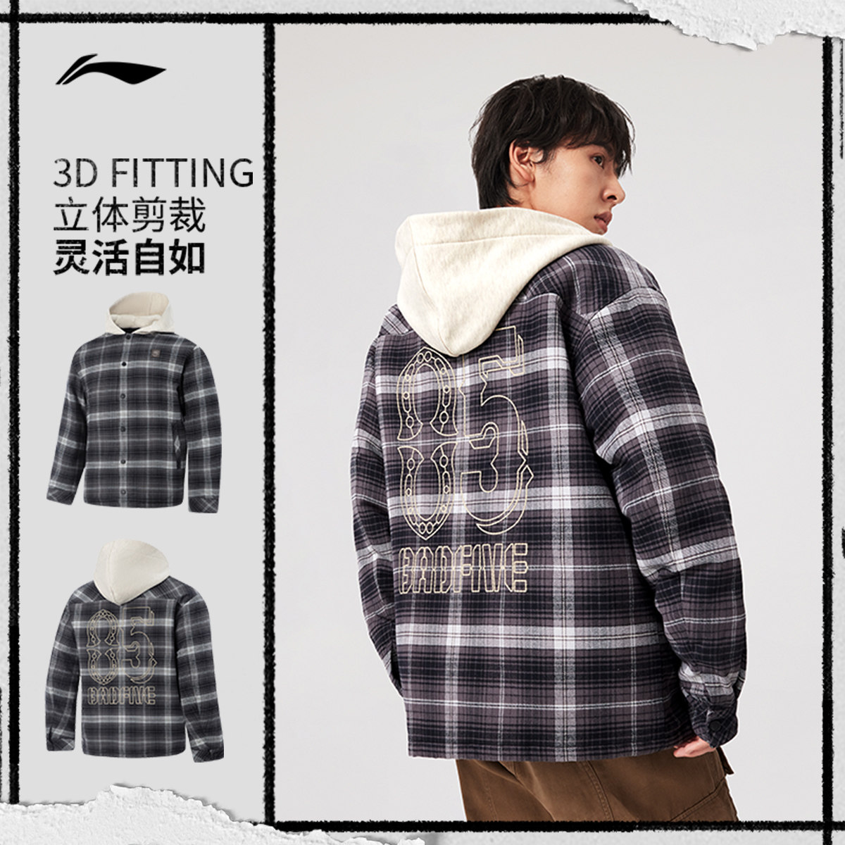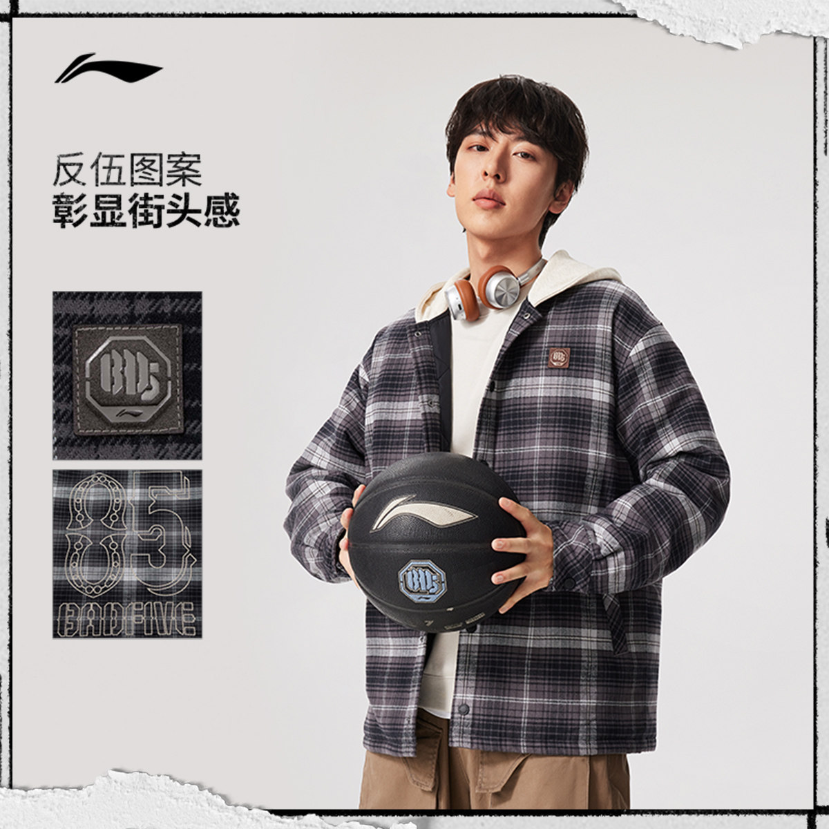 李宁反伍BADFIVE短款短棉服男士立体裁剪男装连帽上衣春季运动服