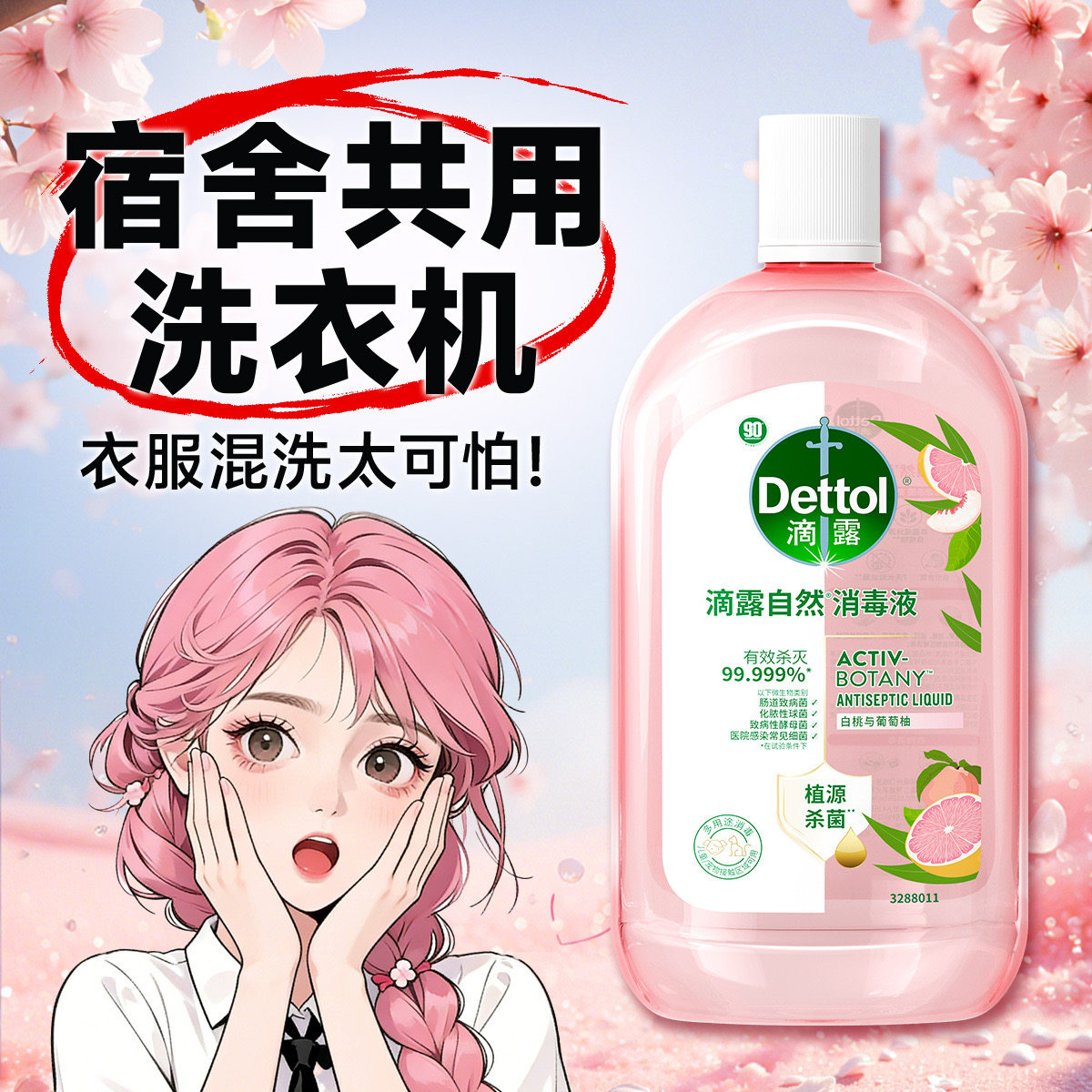 【洗衣必备】滴露自然消毒液1L白桃留香杀菌除螨机床单消毒洗衣服