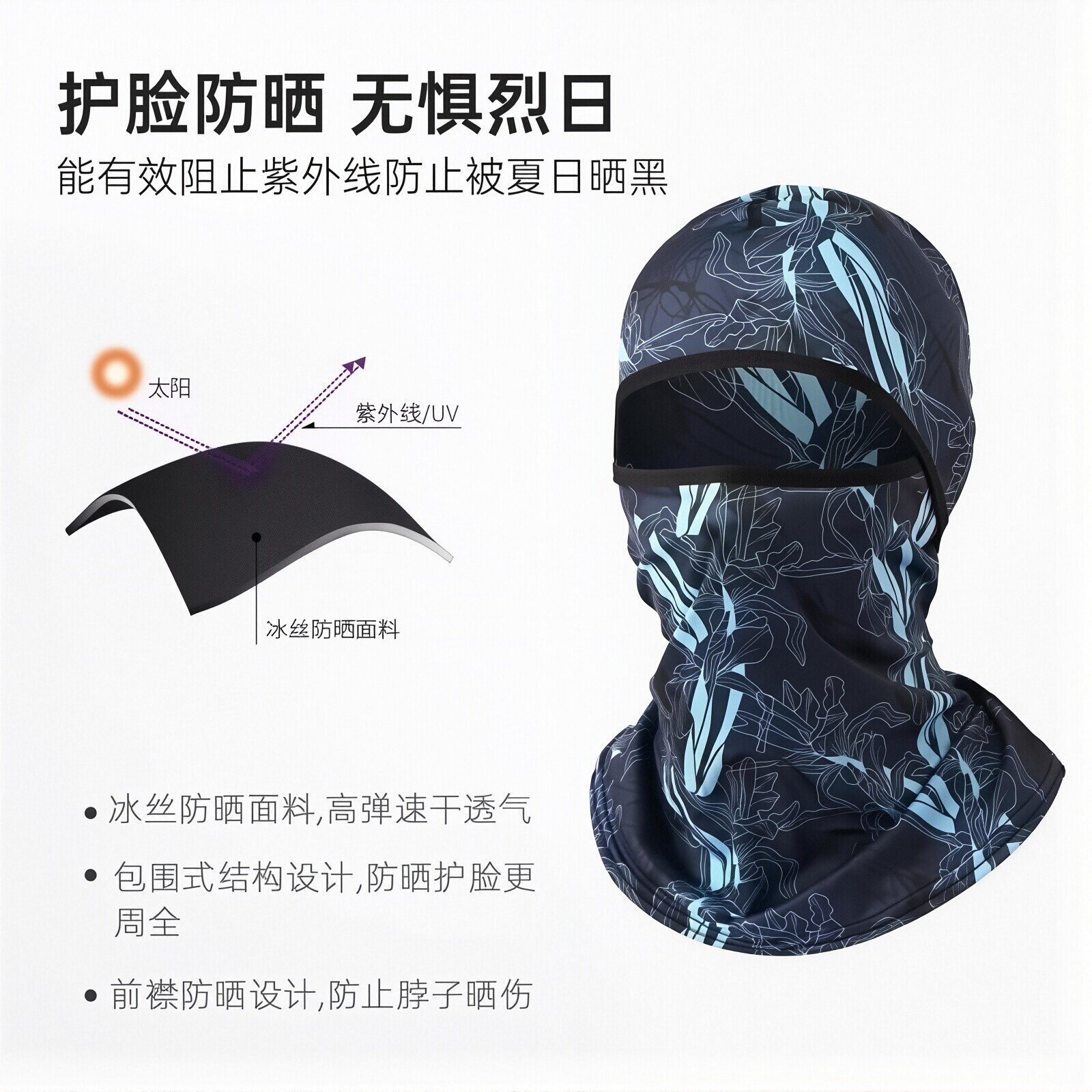 防晒骑行头套冰丝全脸面罩摩托车头盔内胆男女春夏季户外防风围脖