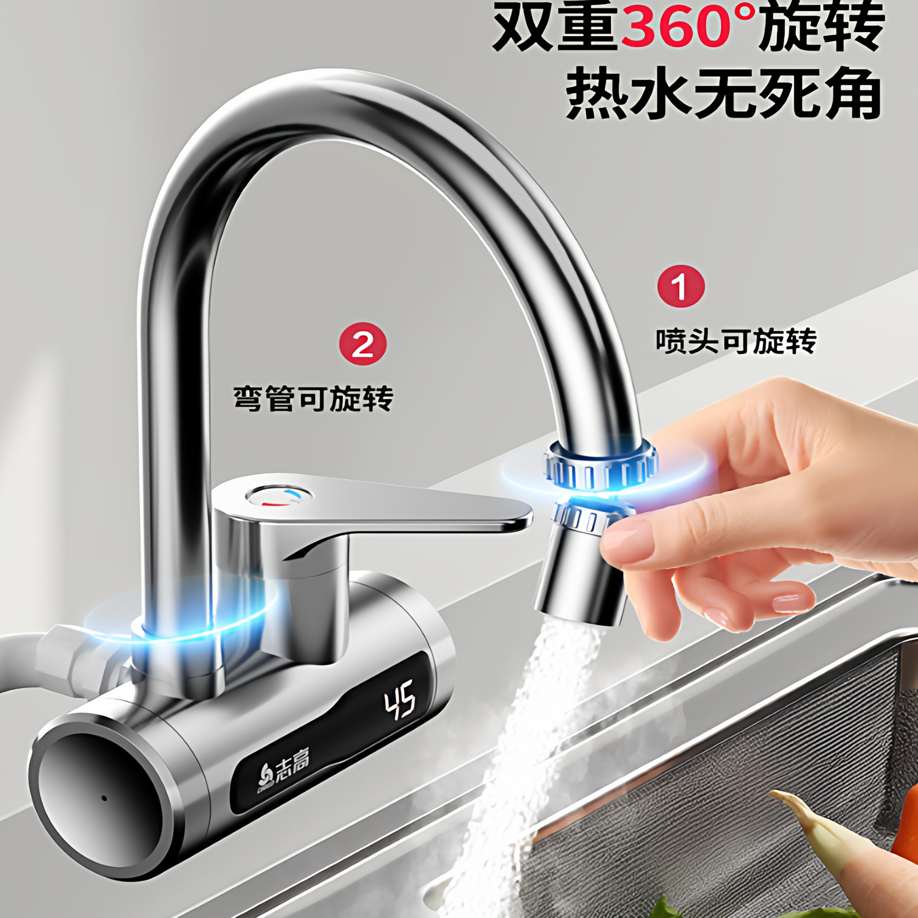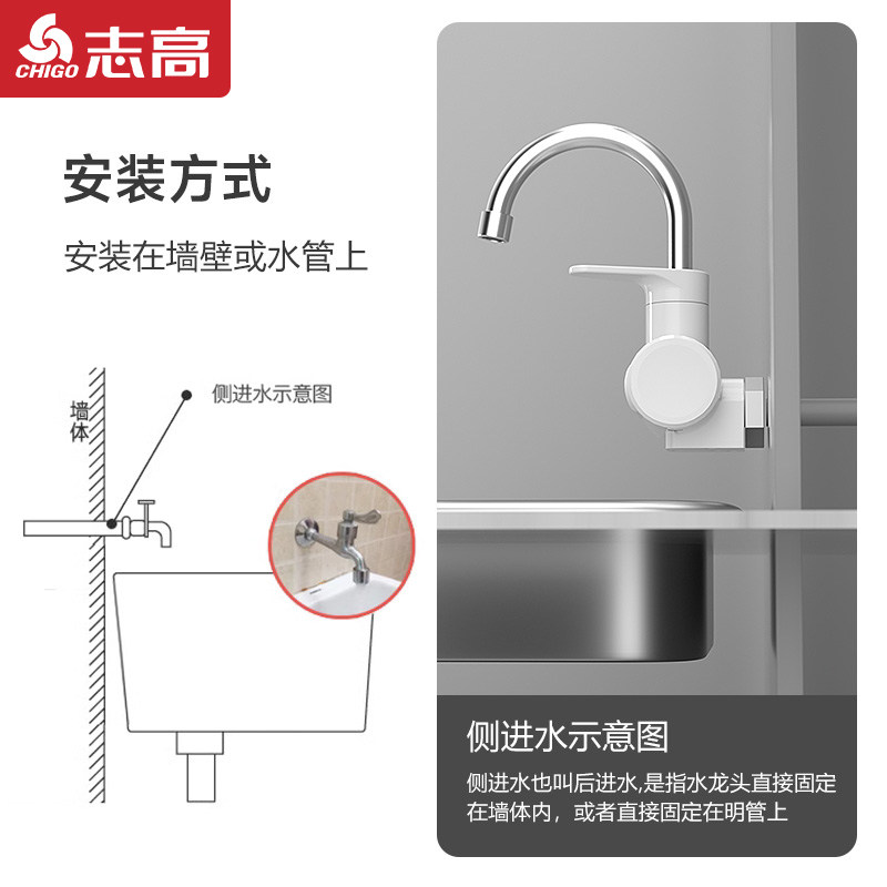 志高电热水龙头侧进水即热式速热加热过水热家用厨房宝变频热水器