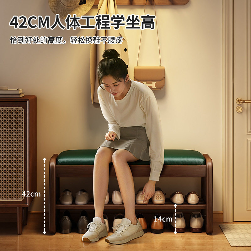 实木换鞋凳门口家用入户进门可坐穿鞋凳鞋柜一体收纳高级感玄关凳