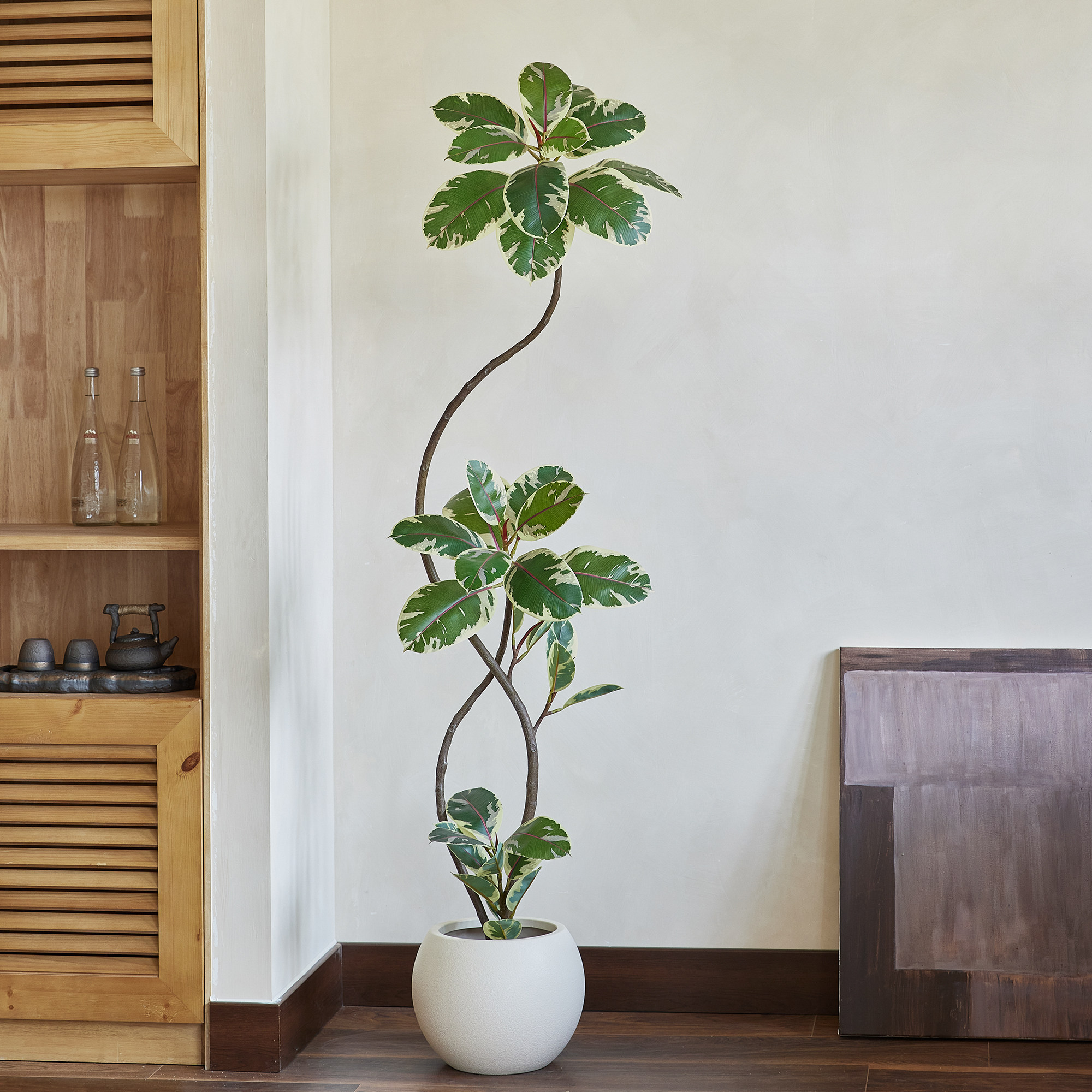 仿真绿植高端轻奢黑金刚橡皮树花叶榕室内客厅高级感落地摆件假树