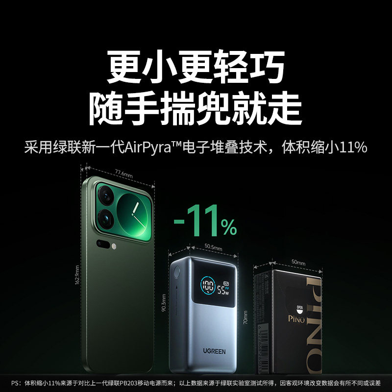 缩小11% 纸巾大小 55W闪充 车规级电芯