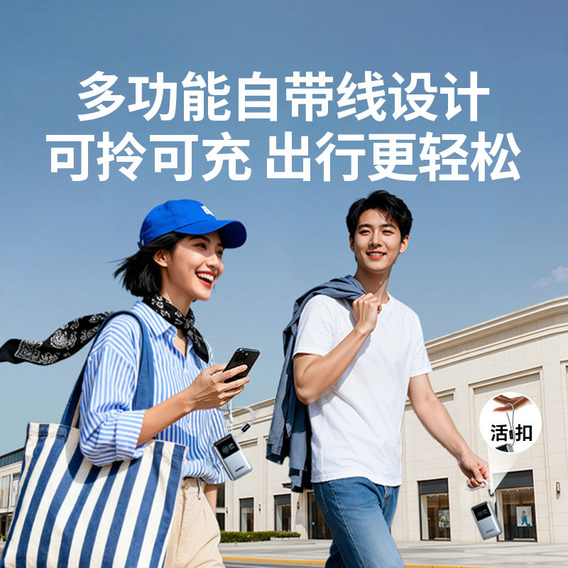 【充电宝3C认证可上飞机】政府补贴15%品胜mini小相机2025新款迷你超薄小巧便携自带线快充适用华为苹果小米