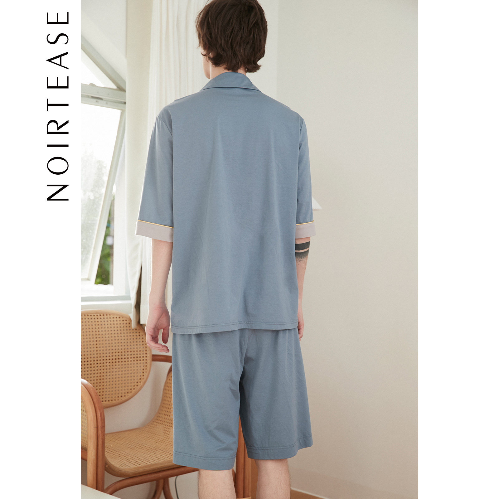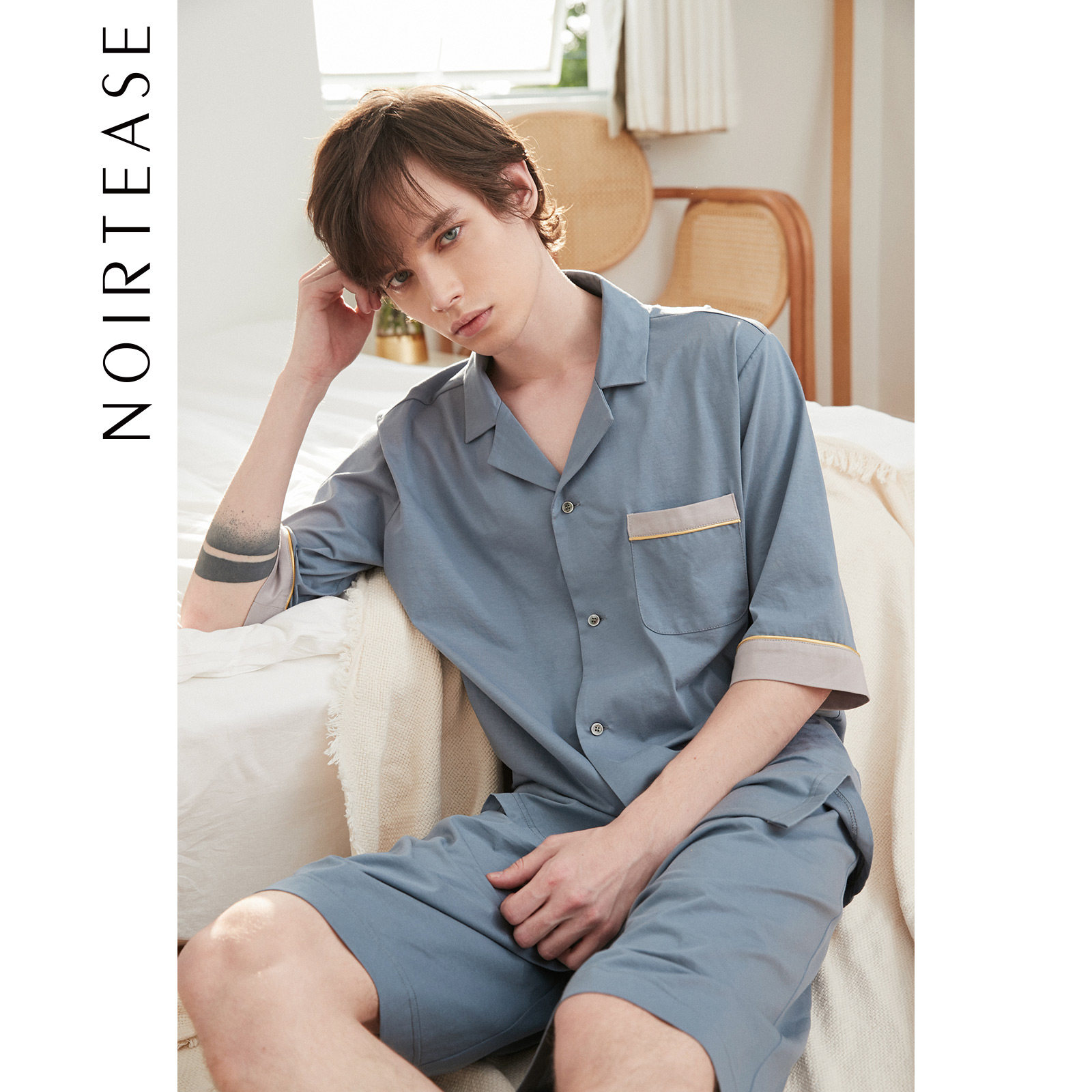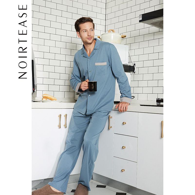 NoirTease奈黎诗纯棉男士睡衣两件套春秋薄款全棉长袖家居服套装