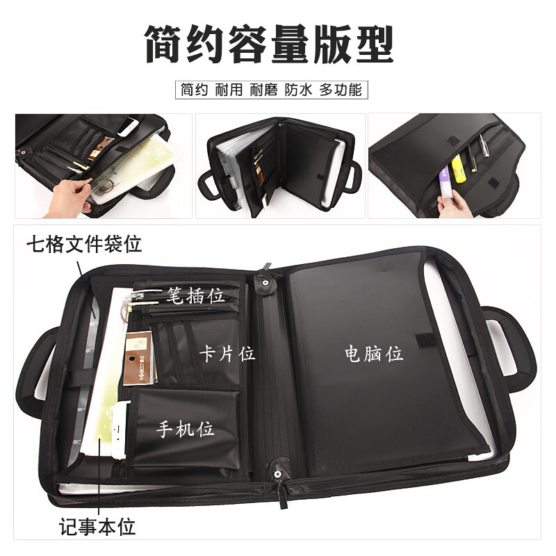 康百多功能文件包加厚防水拉链档案资料袋男士商务办公包手提多层分类公文包女大容量收纳包会议文件袋电脑包