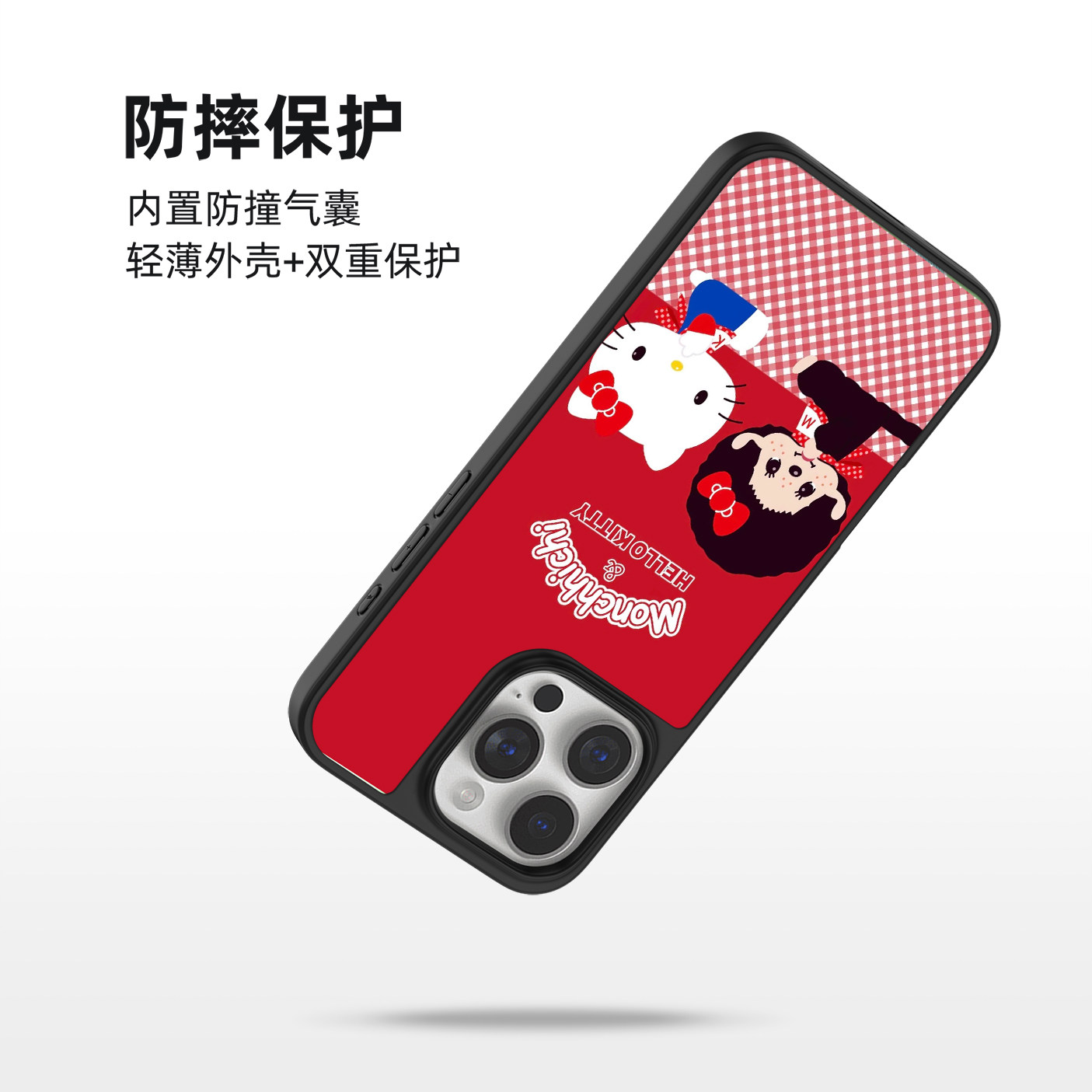 蒙奇奇kitty凯蒂猫 适用苹果华为小米手机壳磁吸iPhone17promax新款17日韩格纹16可爱15卡通14高级手机壳防摔