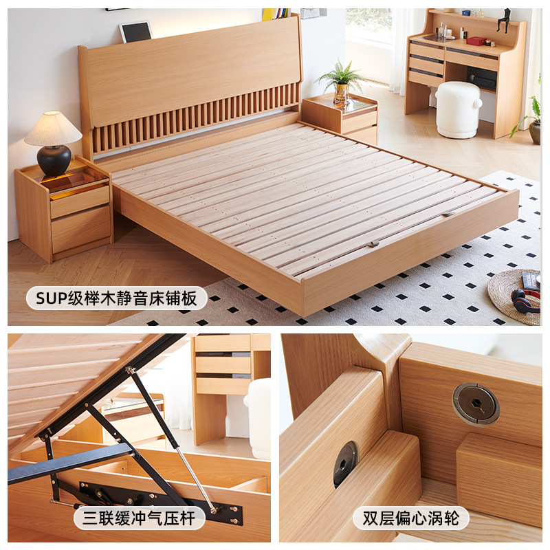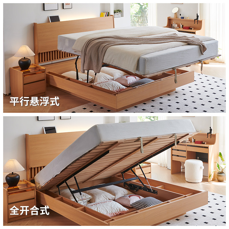 木兜家具气压高箱储物1.8米日式落地床婚床主卧实木双人床箱体床