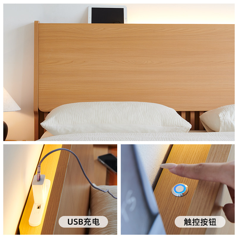 现代简约实木床1.8米主卧双人床1.5M单人经济型高箱储物大床