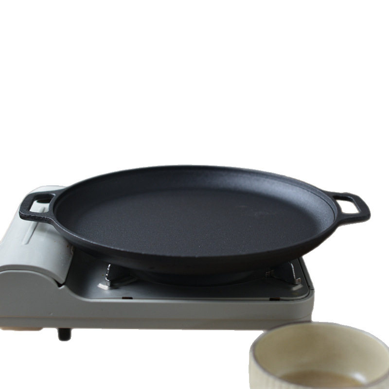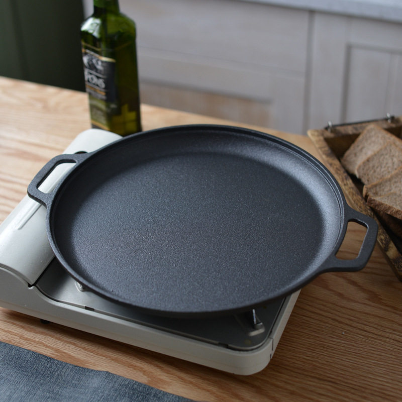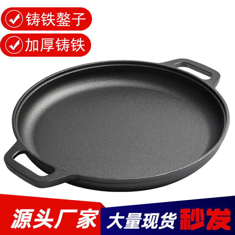 加厚铸铁烙饼锅无涂层煎饼锅铸铁鏊子双耳平底锅手抓饼生铁不粘锅