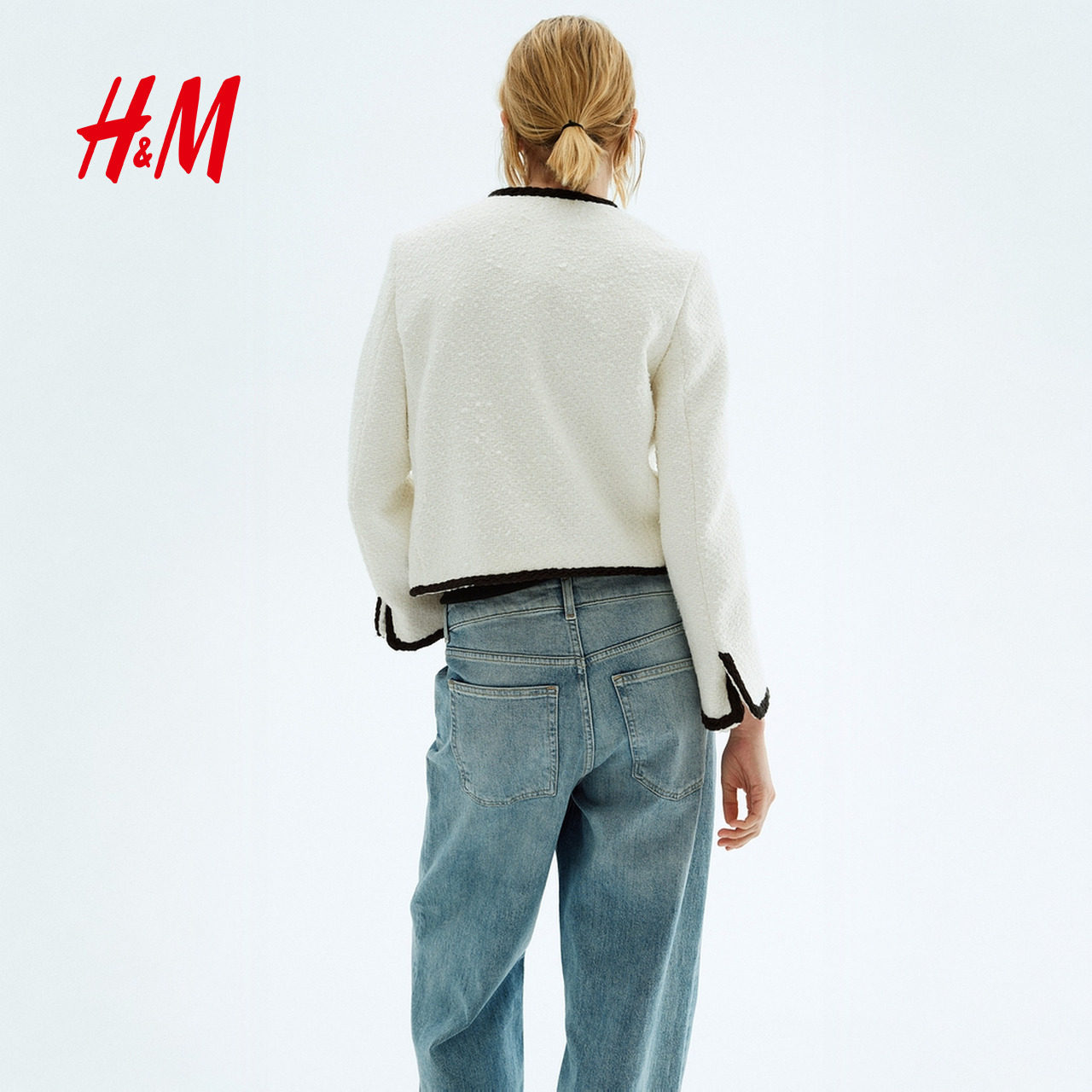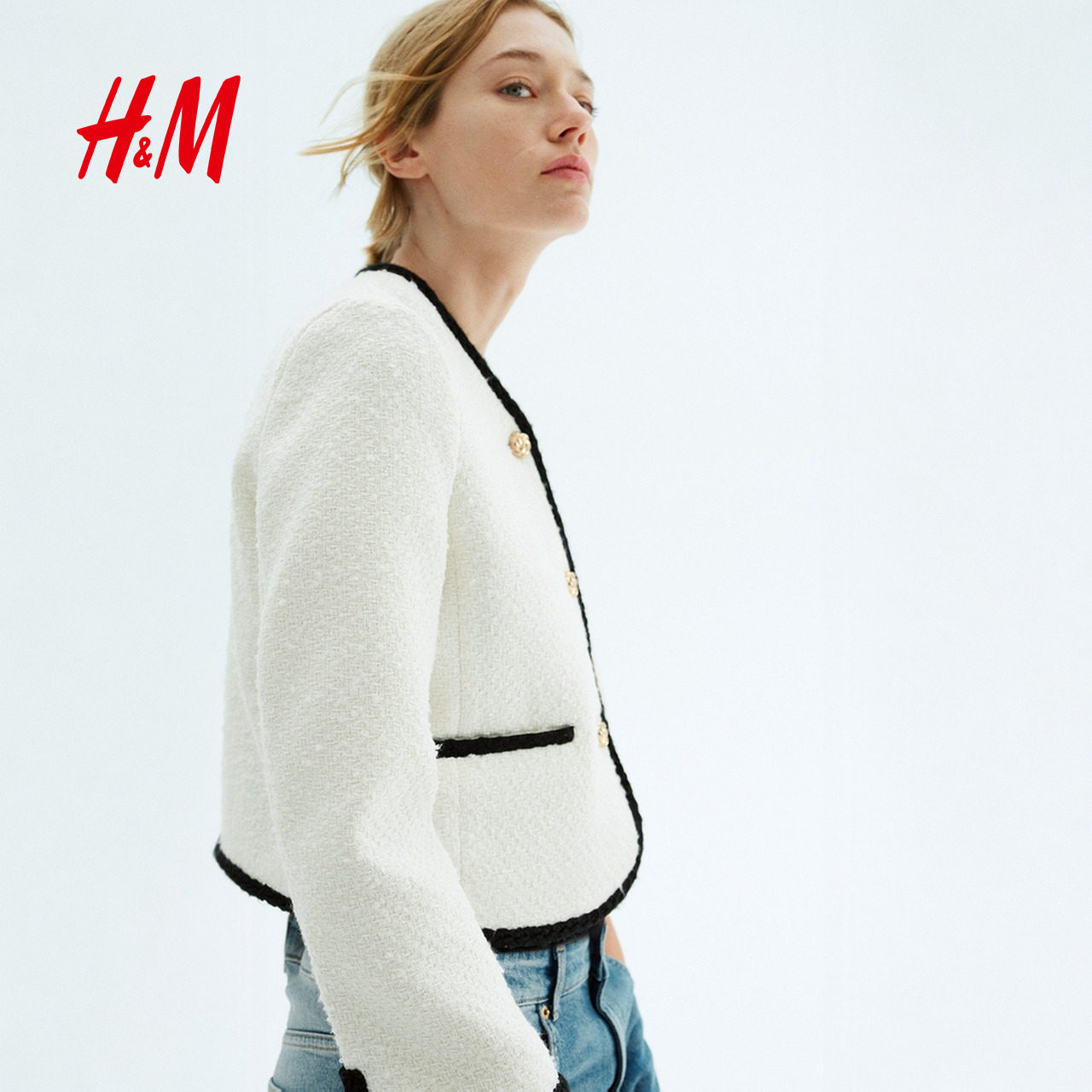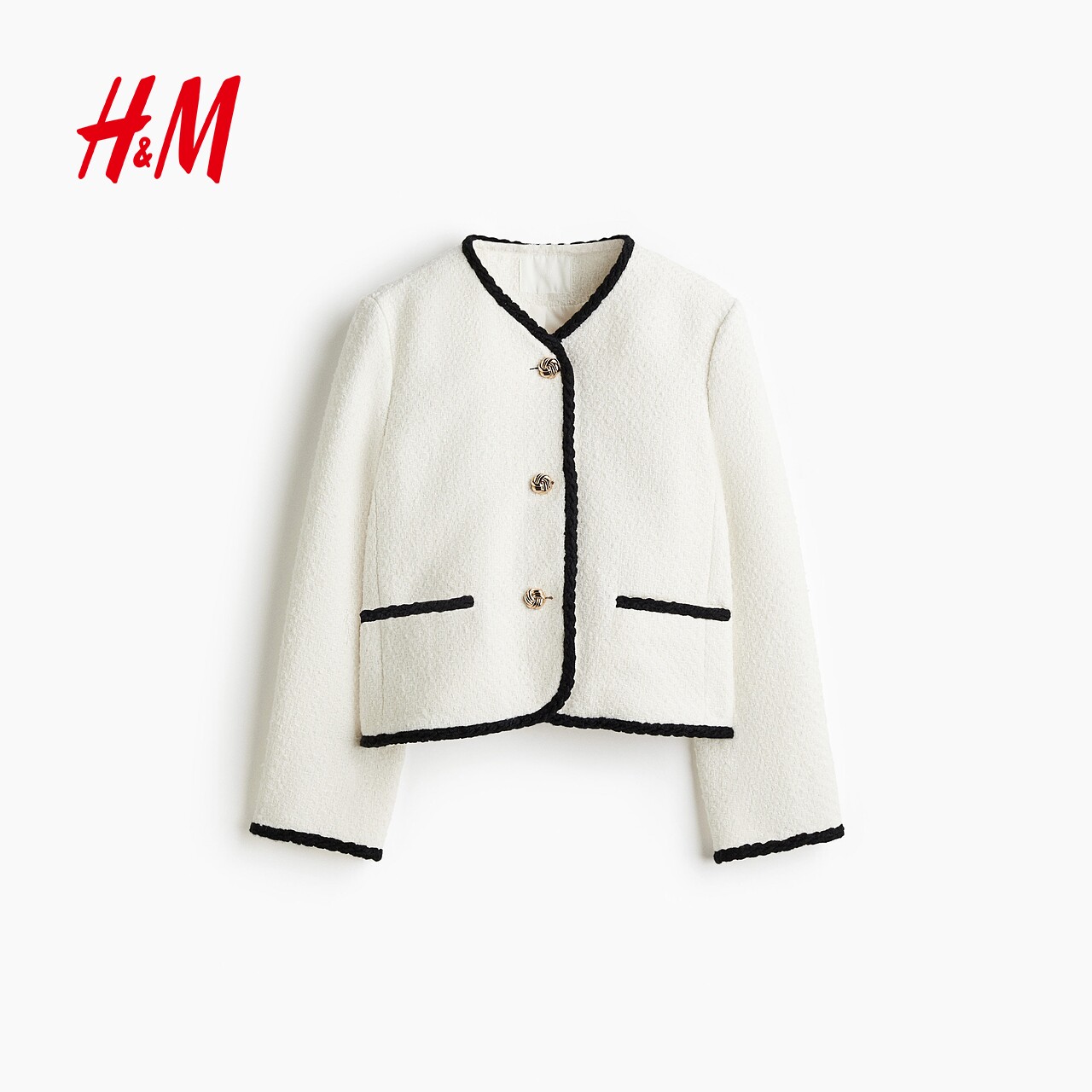 HM女装短外套春季时尚气质小香风镶边圈绒外套1293054
