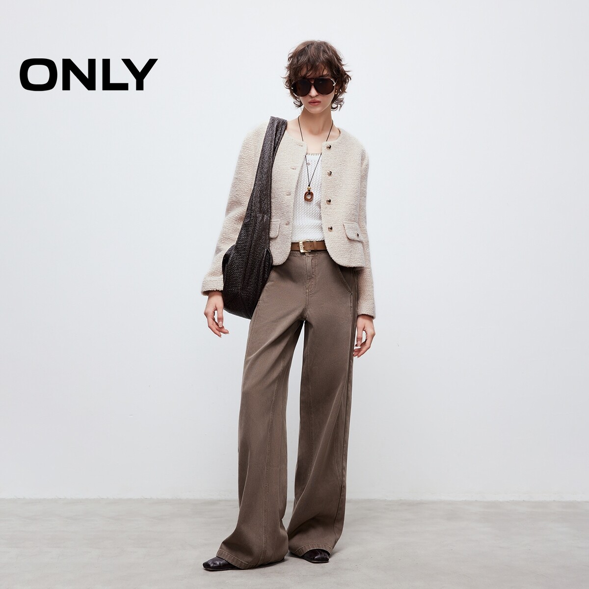 【ONLY奥莱】春款优雅气质正肩修饰腰身口袋装饰小香风毛呢外套女
