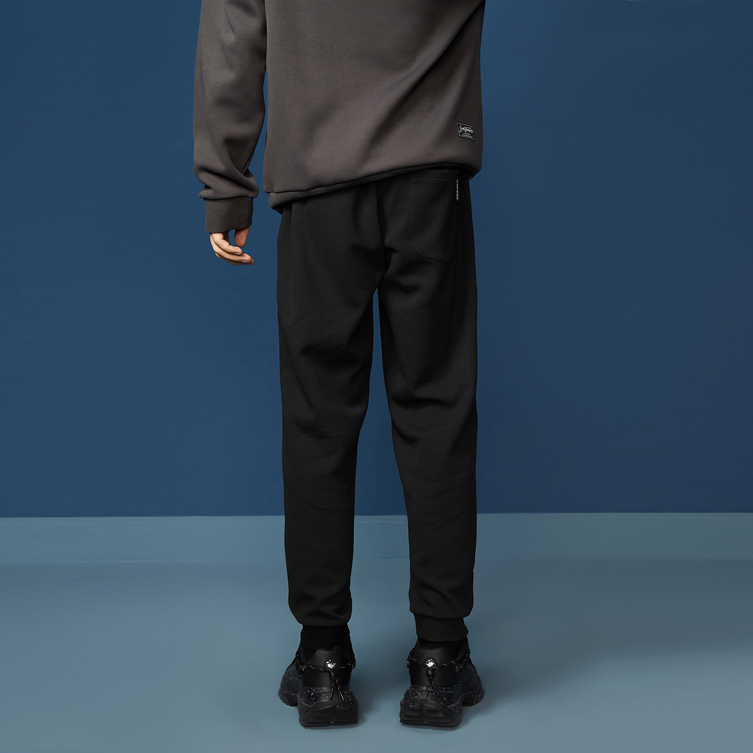 腰间抽绳 束脚设计 斜插口袋 字母印花