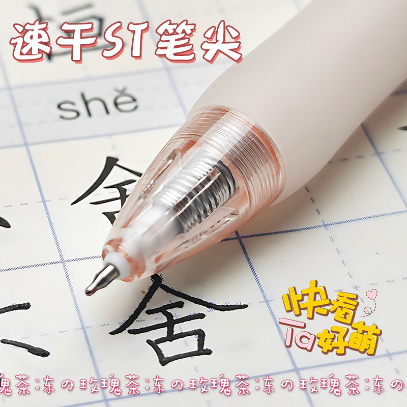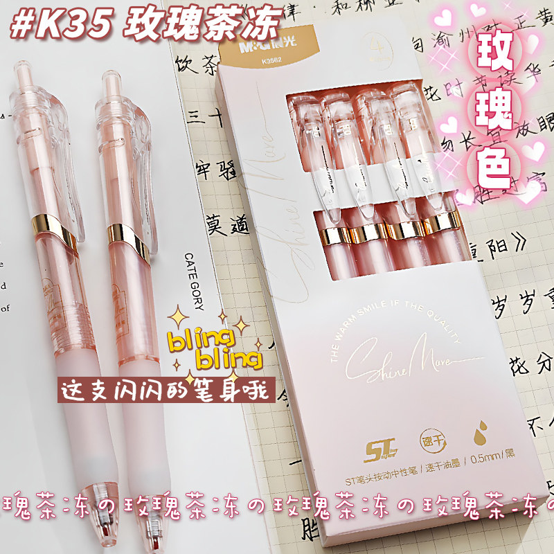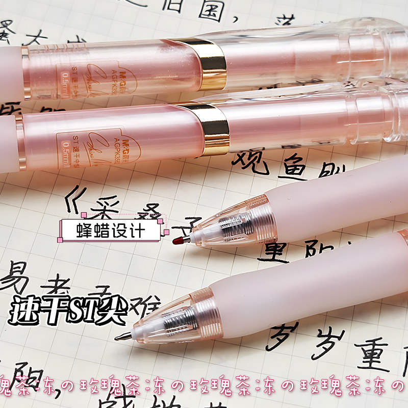 晨光玫瑰茶冻K3562女生按动中性笔水笔碳素黑签字笔高颜值按动笔学生用商务办公考试ST刷题笔黑色水性ins文具