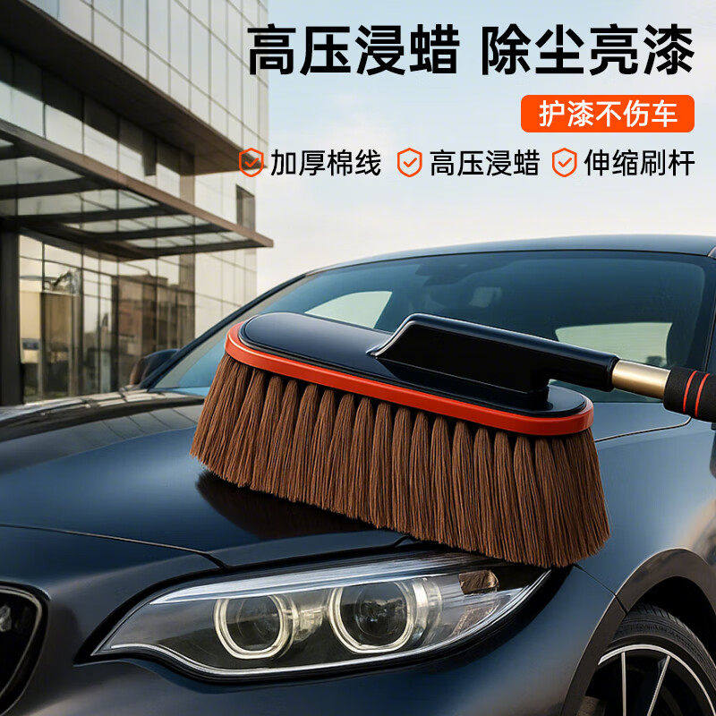 徕本弯杆洗车拖把不伤车漆软毛伸缩车用汽车刷子专用除尘掸子神器