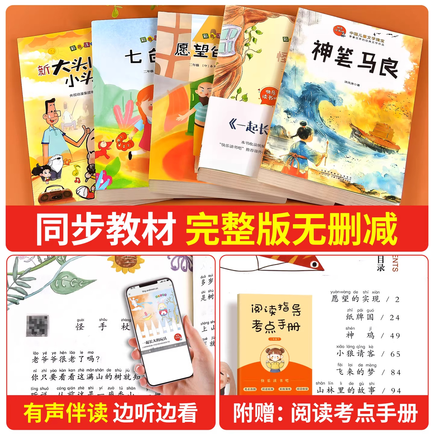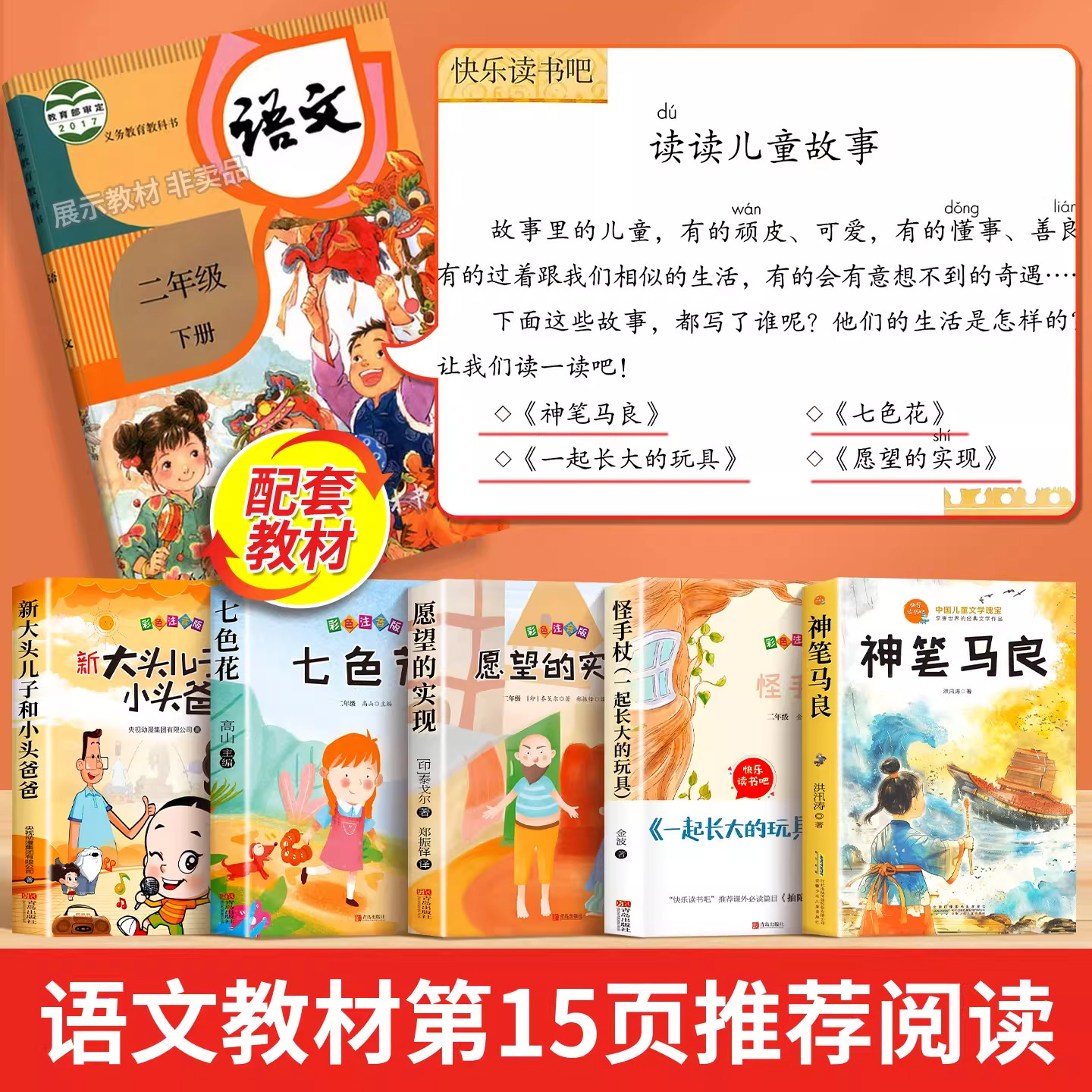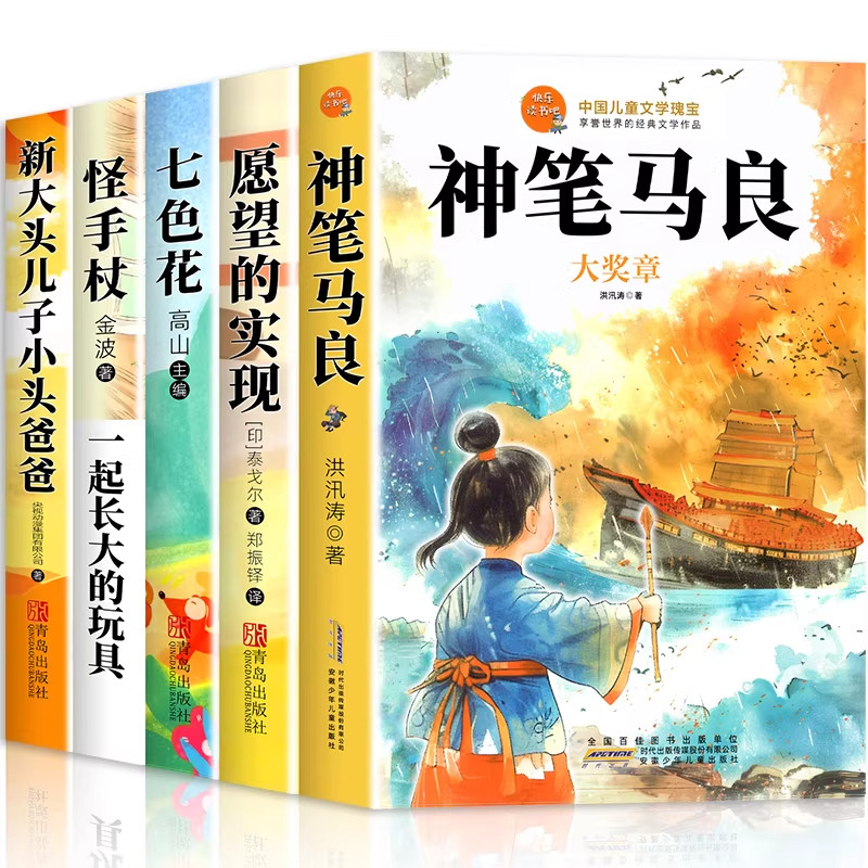 全套5册神笔马良二年级下册必读正版的课外书注音版快乐读书吧二下2小学生阅读书籍七色花一起长大的玩具愿望的实现人教版K故事