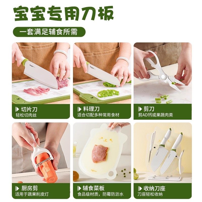 拜格婴儿辅食刀具菜板套装宝宝专用切菜刀菜板二合一组合工具全套