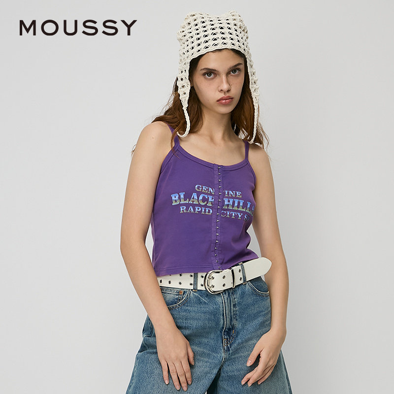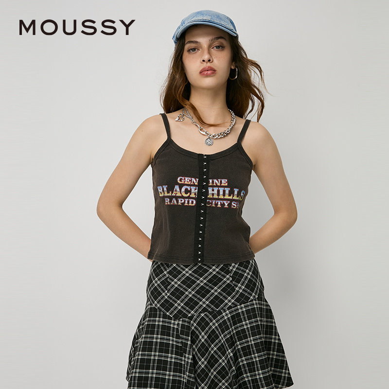 moussy 夏季新品摇滚风美式热辣针织吊带背心女010HAQ90-2321