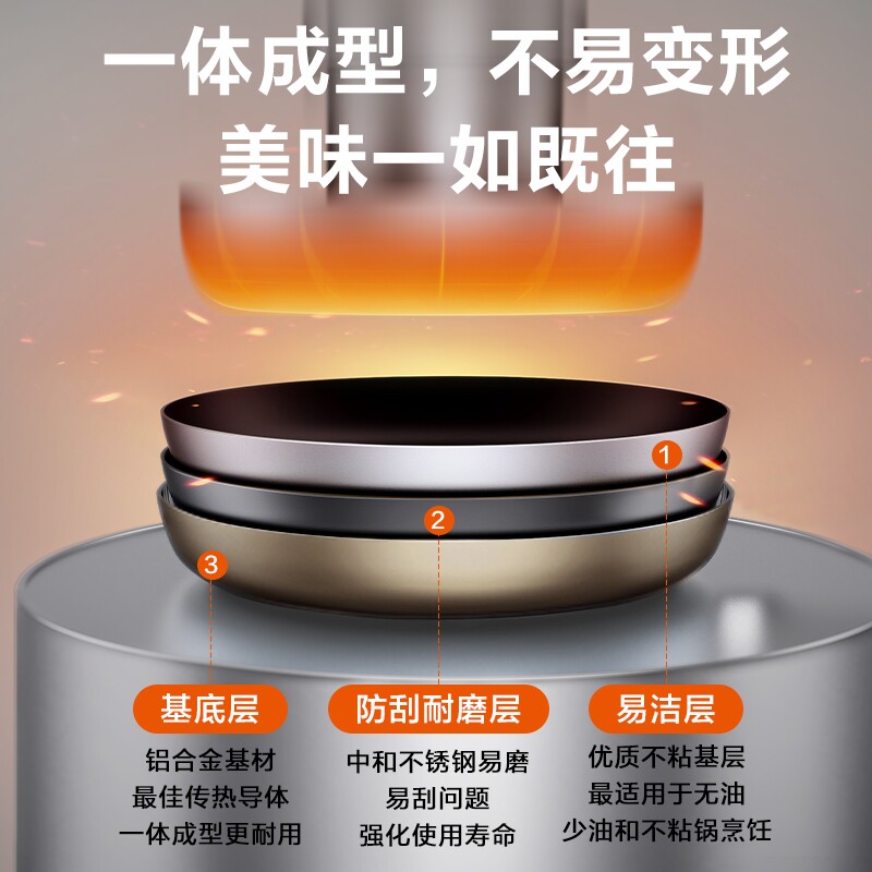 钛红芯控温平底锅不粘锅家用无涂层炒菜煎蛋牛排电磁炉专用深煎锅