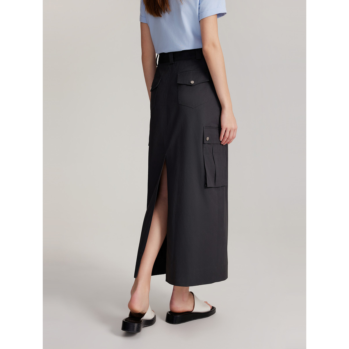 ELLE灰色格雷系中长款半身裙女2025夏季新款工装风高腰小众裙子