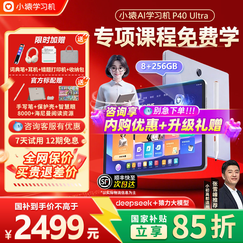 【支持88vip券】焕新版小猿学习机P40Ultra猿辅导ai学练机智能平板早教机大屏护眼儿童平板语文数学英语通用