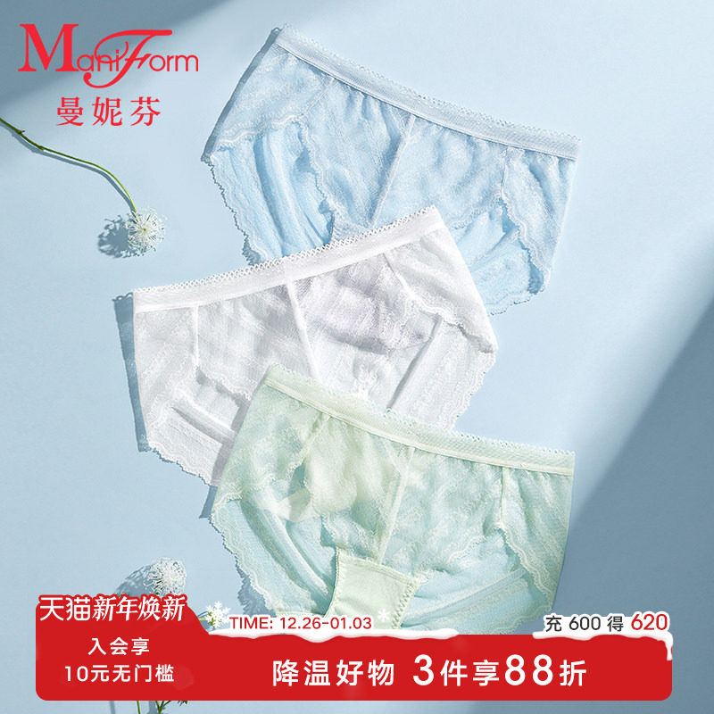 曼妮芬蕾丝裤中低腰女性感内裤底裤舒适三角裤20612196