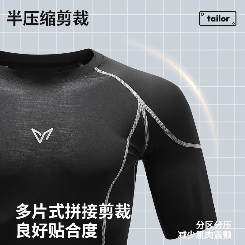 维动短袖上衣运动套装男健身衣跑步透气压缩篮球高弹训练紧身T恤