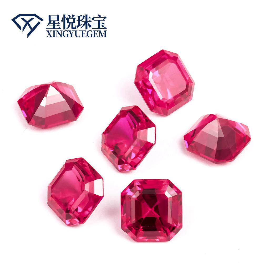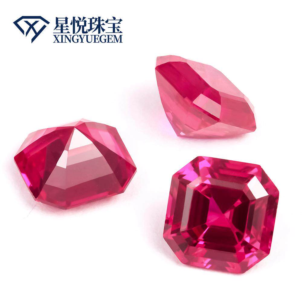 培育贵重彩宝1-5克拉培育正方倒角阿斯切玫红/鸽血红再生人造宝石