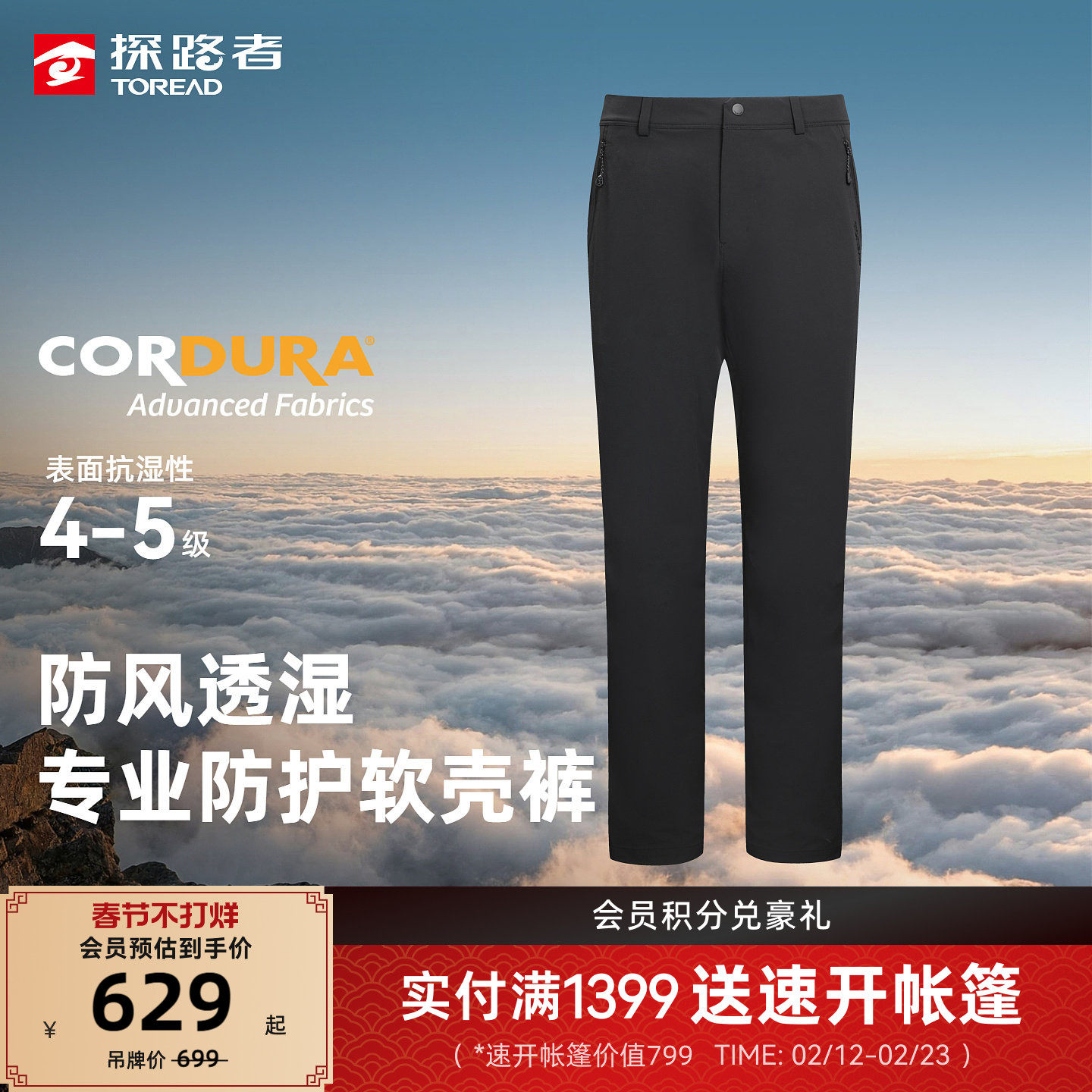 【商场同款】探路者CORDURA面料软壳裤男专业徒步登山防风裤女