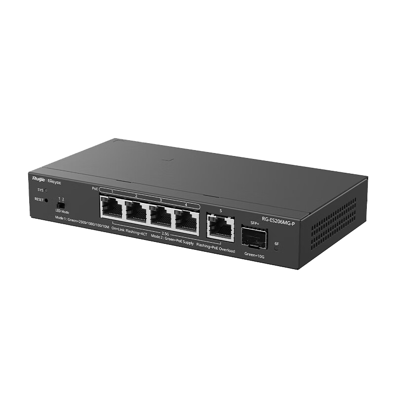锐捷睿易6口2.5G网管POE交换机RG-ES206MG-P 5电口2.5GE千兆万兆光口上联 4个POE口功率70W 端口聚合远程重启