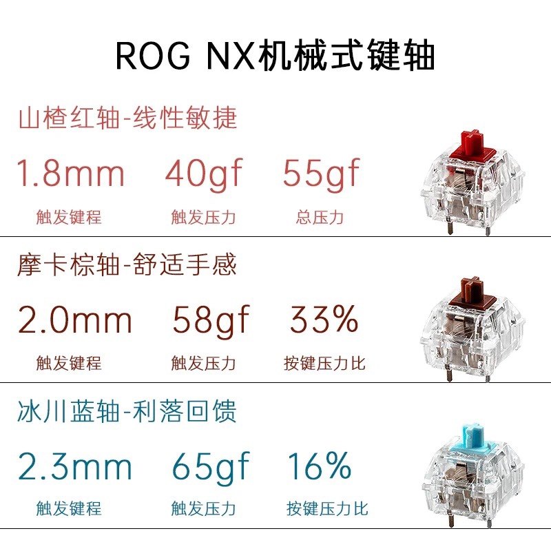 华硕ROG NX机械轴体 摩卡棕 山楂红 冰川蓝三种nx机械自研轴体
