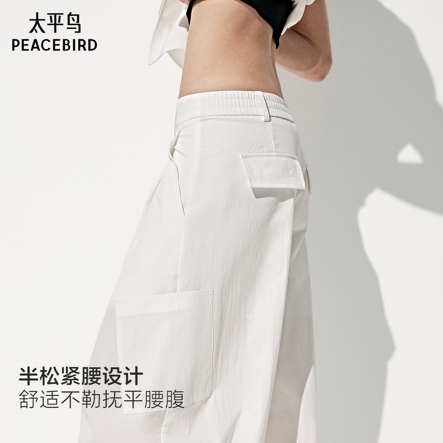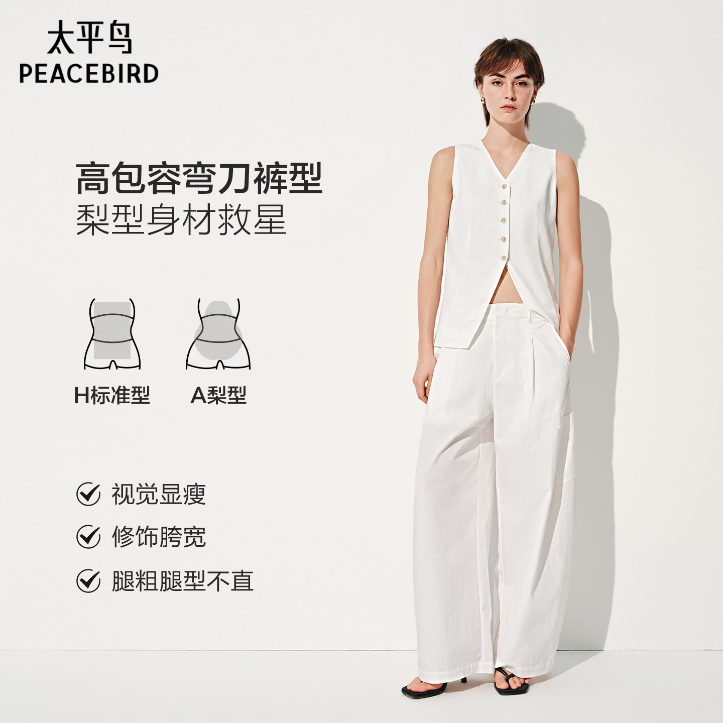 百分小白裤云栖裤商场同款太平鸟26夏白色弯刀休闲裤女A1GBG2211