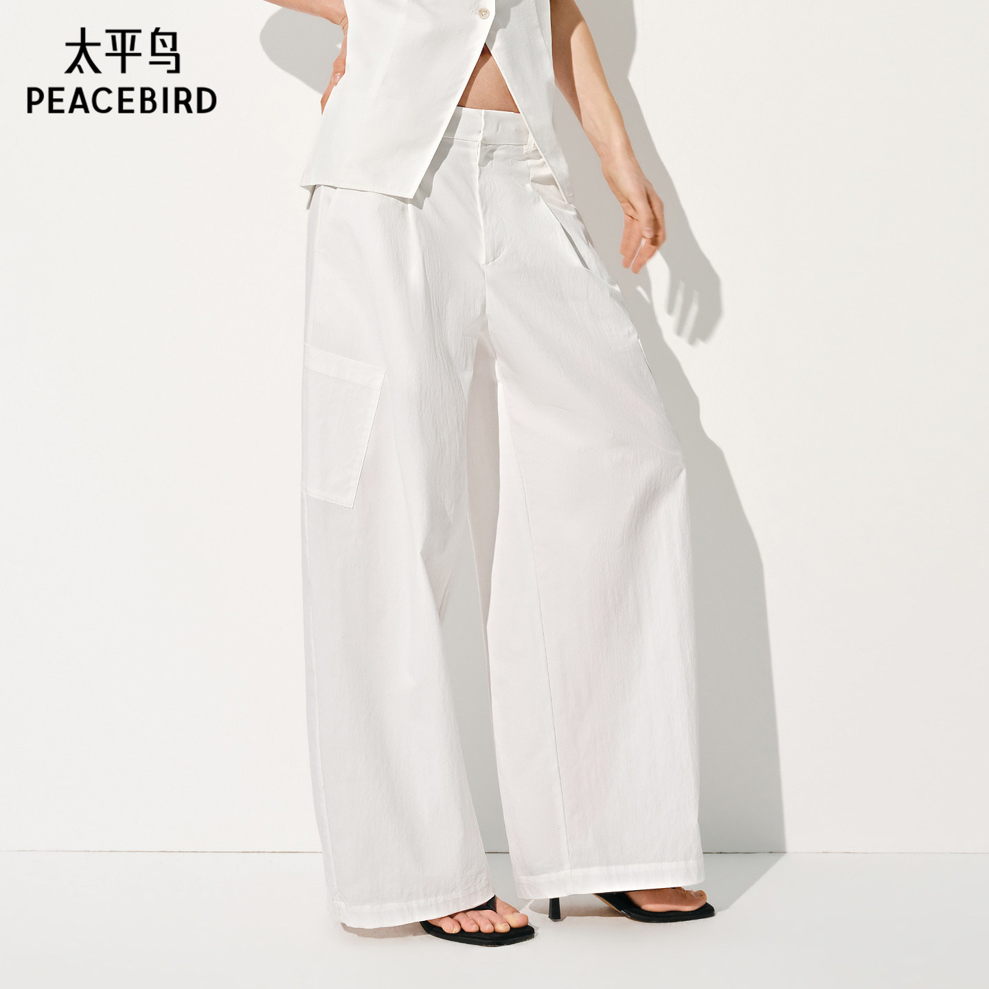 云栖裤商场同款太平鸟白色阔腿弯刀休闲裤女
