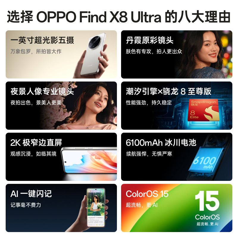 OPPO Find X8 Ultra 旗舰手机夜景人像专业镜头骁龙8至尊版ColorOS 15拍照手机oppo官方旗舰店