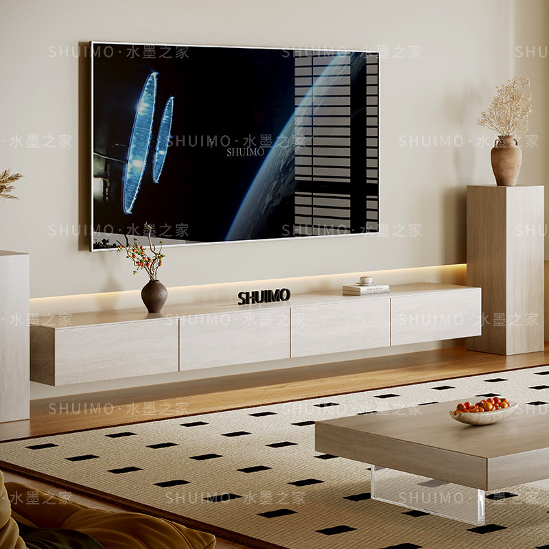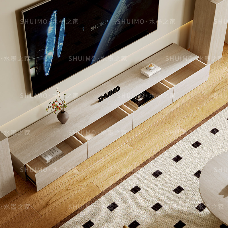 德利丰侘寂风法式复古洞石岩板落地台小户型客厅家用电视机柜组合
