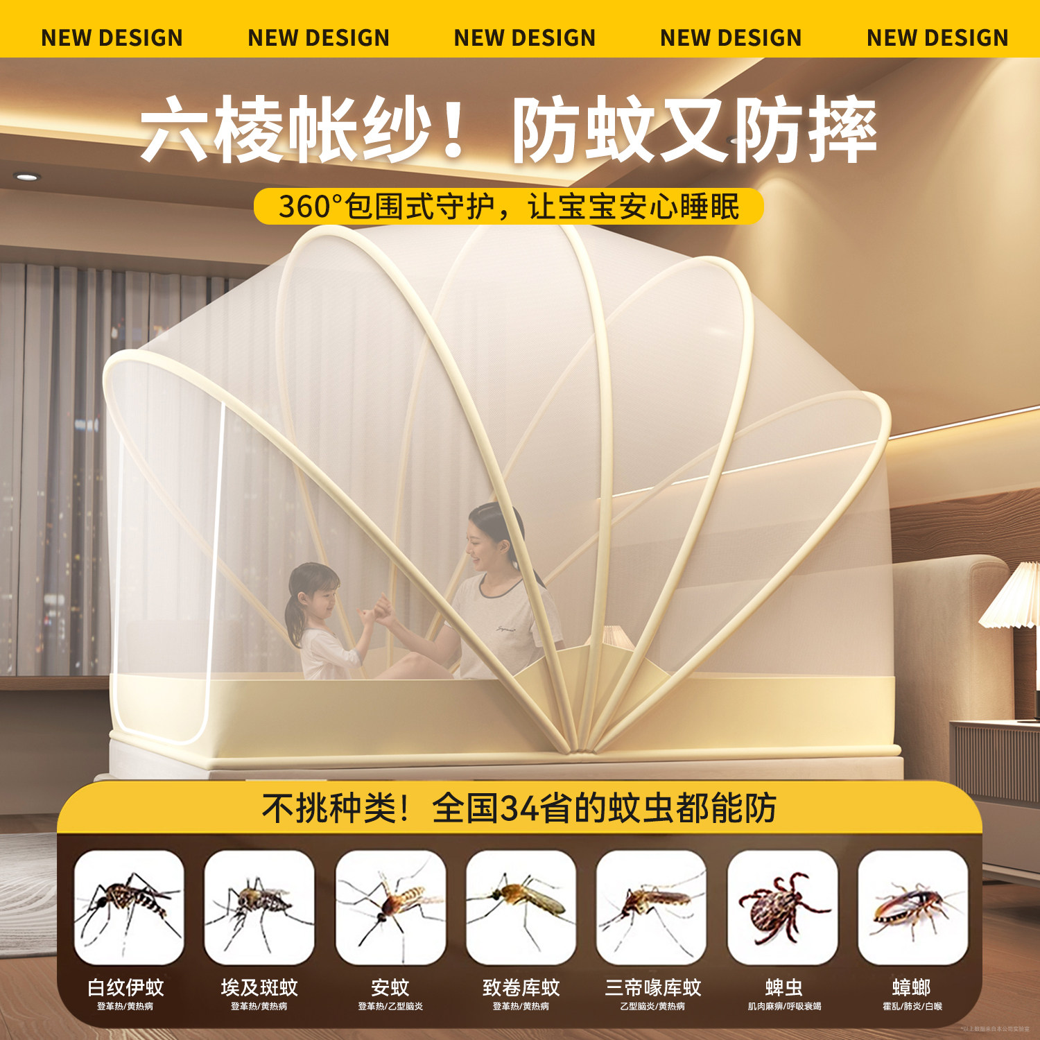 家用免安装蚊帐2026新款型可折叠卧室全罩式蒙古包无需支架防蚊罩