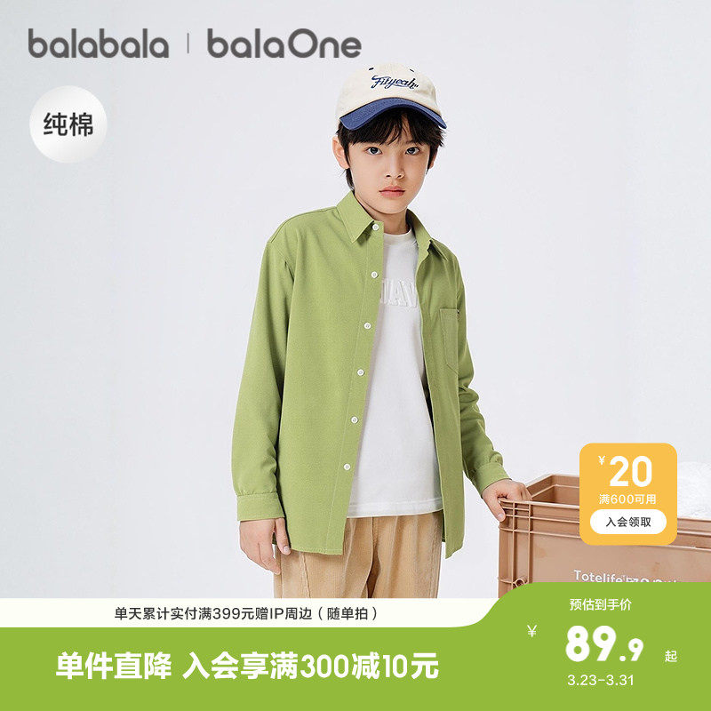 巴拉巴拉童装儿童衬衫长袖男童秋全棉磨毛宽松亲肤亲子装休闲洋气