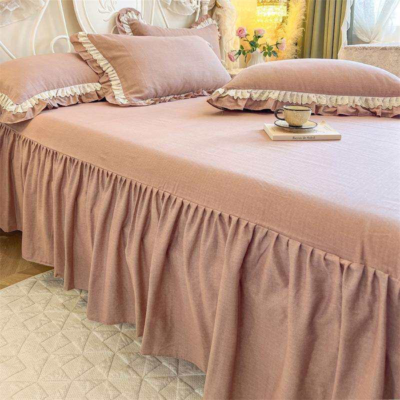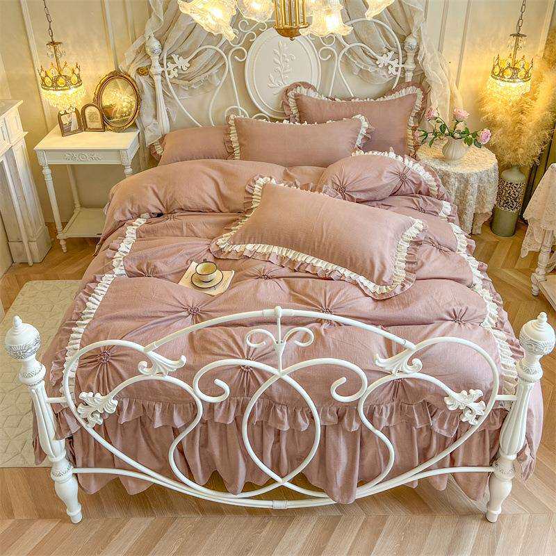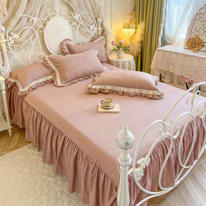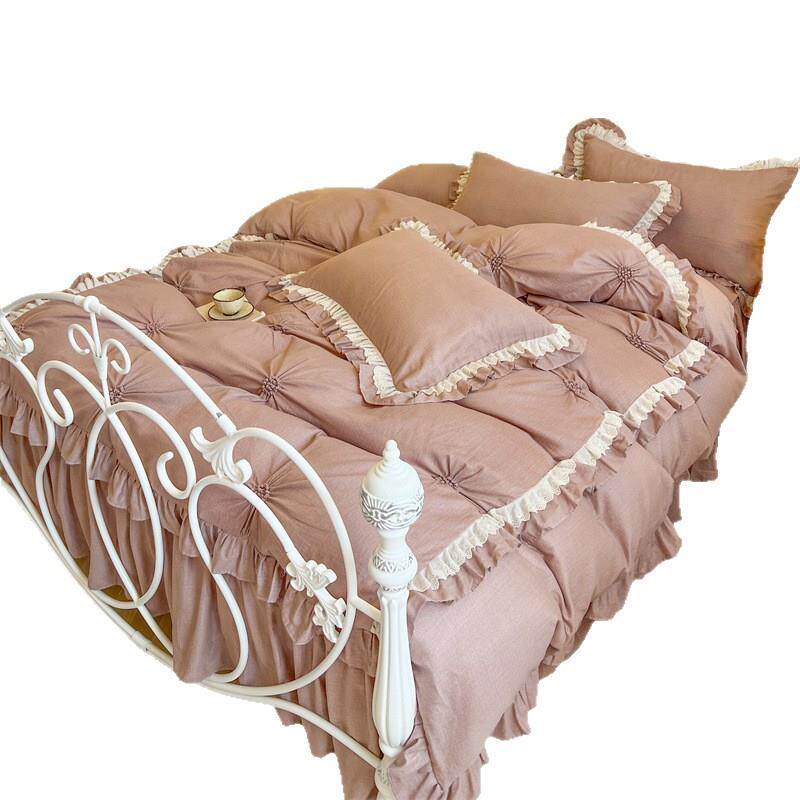 法式少女复古全棉双层纱床裙款四件套纯棉花边被套公主风裸睡床单