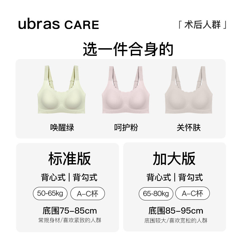 ubras CARE乳腺术后无尺码透气裸感可置义乳文胸背心清凉薄款